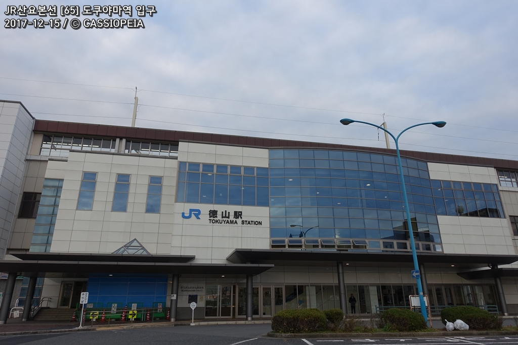 이와쿠니~도쿠야마 구간에서는 산악 구간으로 바로 지름길로 가는 간토쿠선과는 달리, 해안을 따라 우회하는 경로를 택하고 있다. 그렇지만 멀리 돌아가는 산요본선은 전철화되어 있고, 간토쿠선은 비전철화 노선이므로 소요시간은 비슷하며, 해안 마을의 인구가 더 많으므로 승차인원도 산요본선 쪽이 더 많은 편이다. 산요신칸센과 나란히 달리는 노선이므로 장거리 수요는 신칸센에게 모두 빼앗기고, 구간 수요와 근거리 통근/통학 수요로 열차가 달리고 있다. 히로시마지구와는 다르게 열차의 운행 빈도도 많이 없는 상황이며 열차의 차종도 115계 등 구형열차로만 운행되는 구간이다.