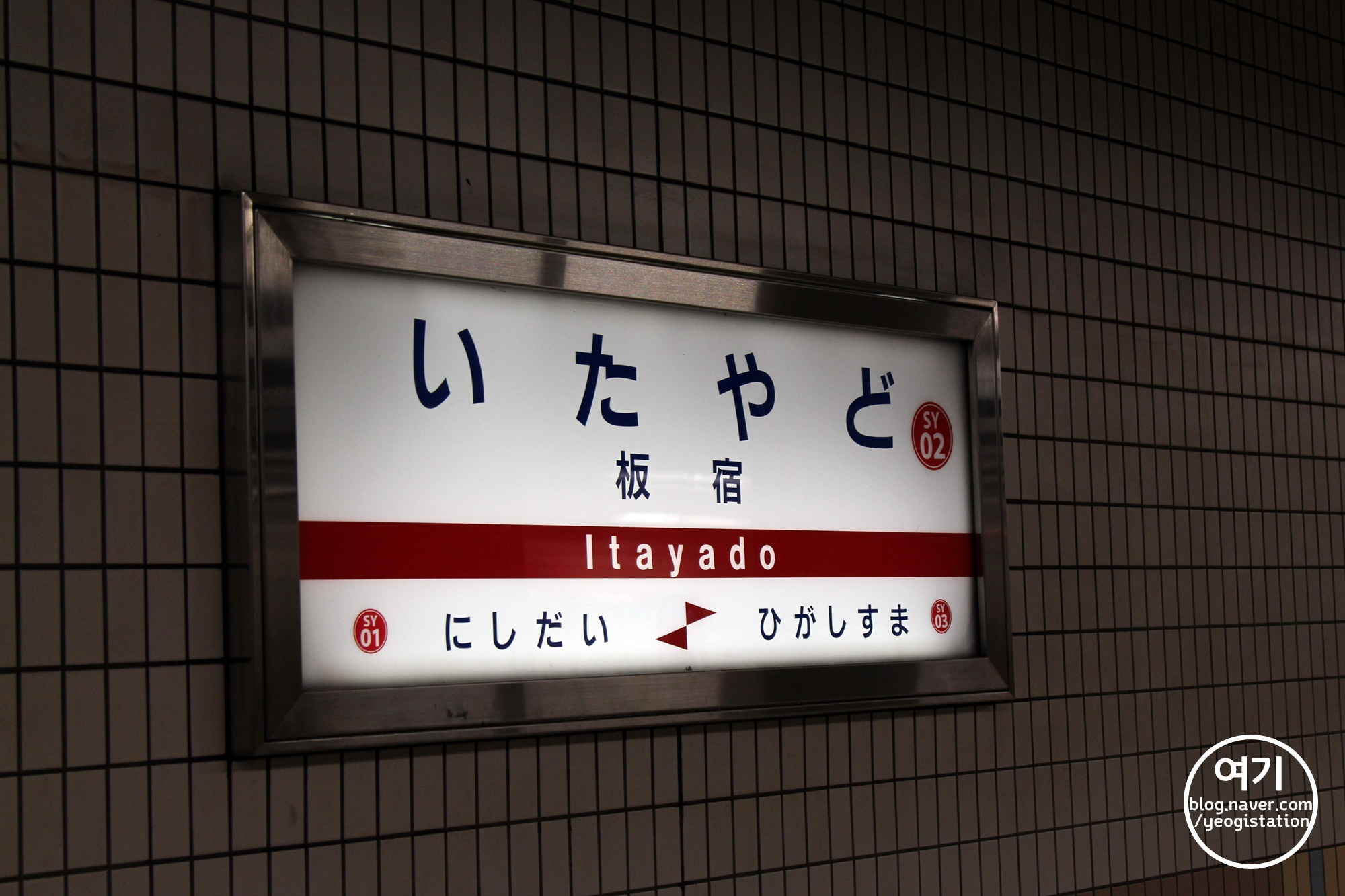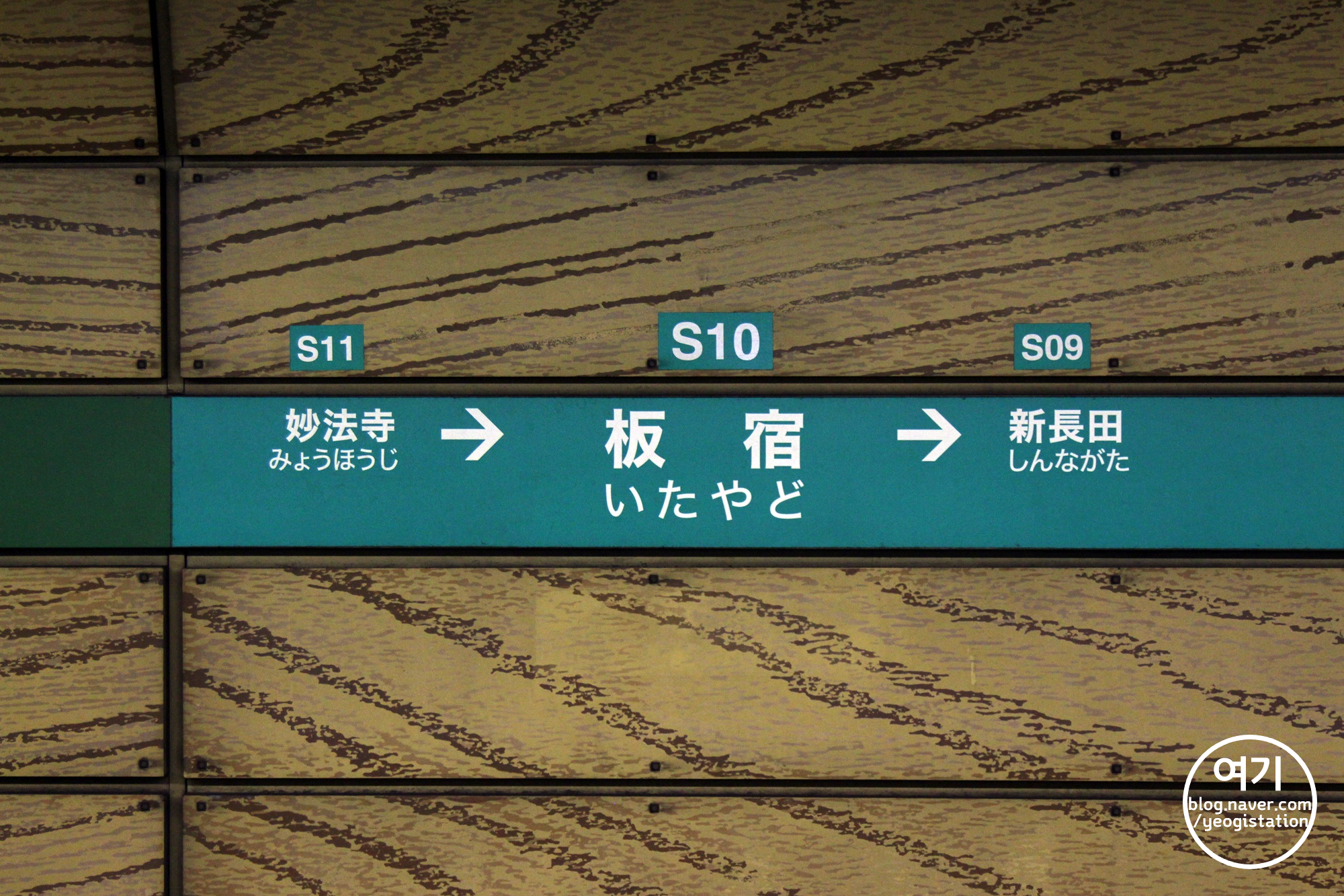심플하게 생긴 고베 지하철 이타야도역 역명판. 섬식 승강장이므로 선로 옆 벽면에 붙어있습니다.