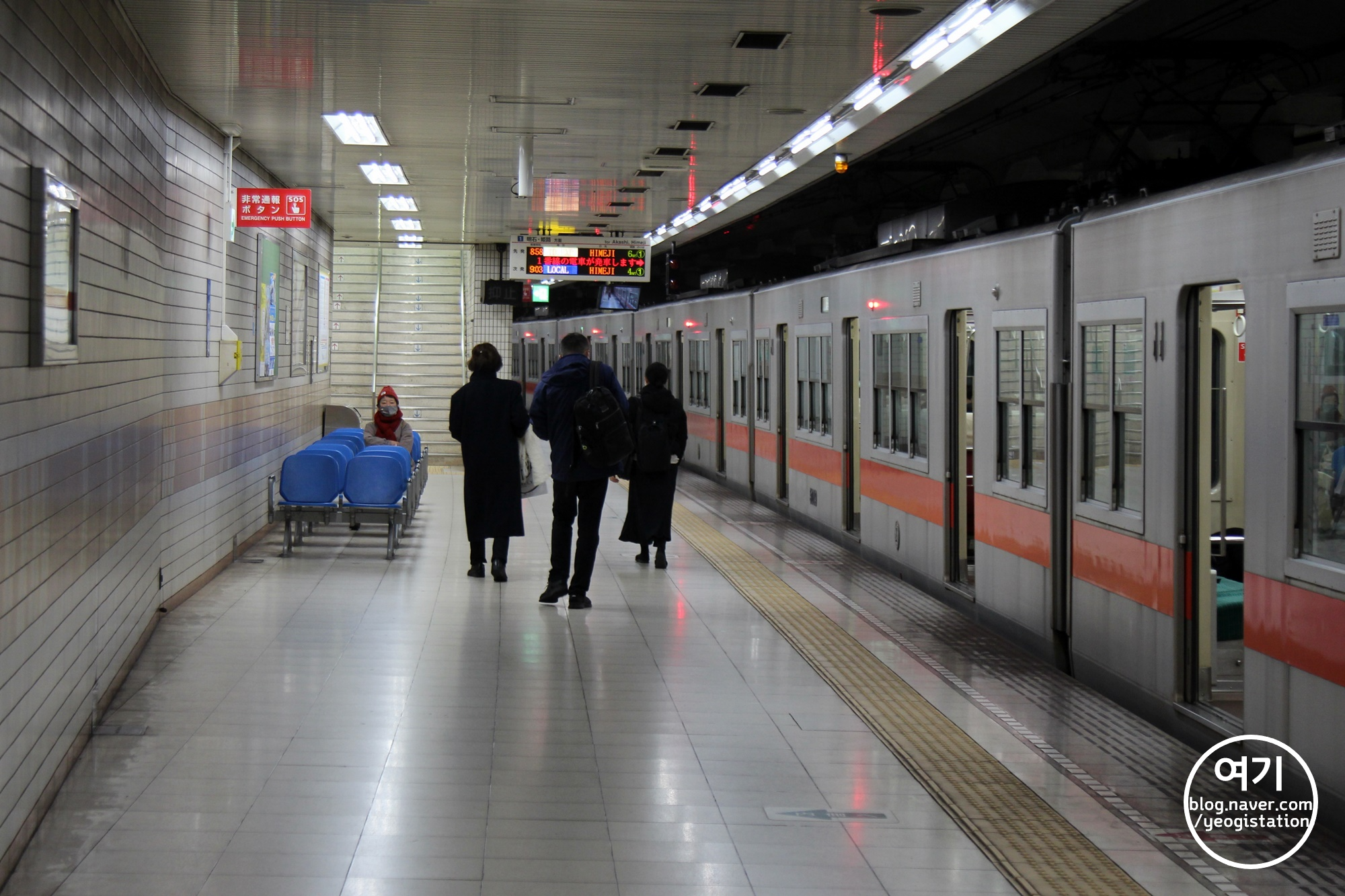 중간중간 많은 역들을 건너뛰는 직통특급의 위엄을 느끼며 한참 앉아간 끝에 도착한 이곳. 지하에 위치한 승강장인데요.