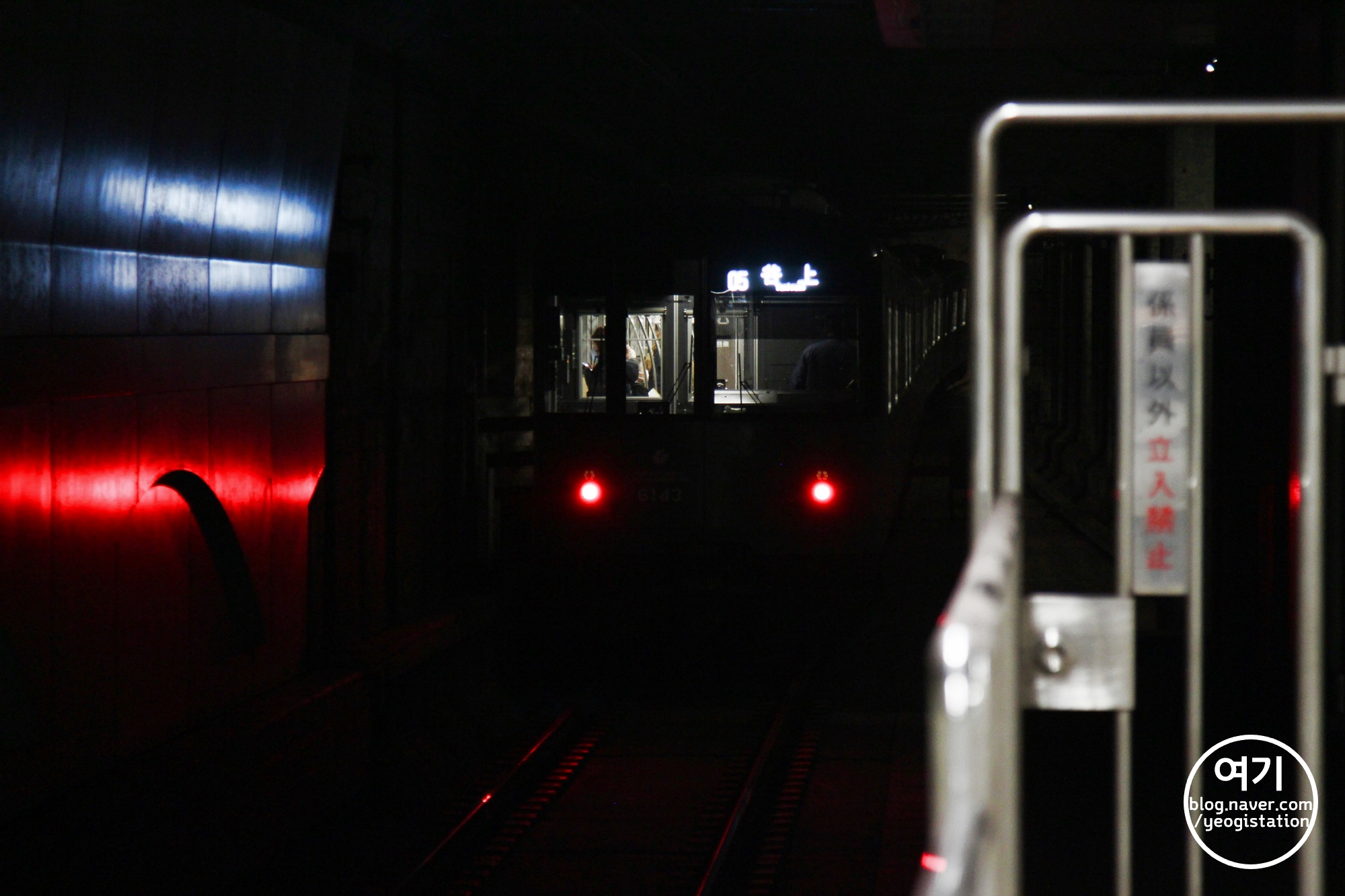 목적한 역에 도착한 여기. 일단 제가 타고온 6000형 차량이 터널 너머로 떠나가는 모습을 촬영해 봅니다. 밝기를 키웠어도 잘 안보이지만 말이에요.