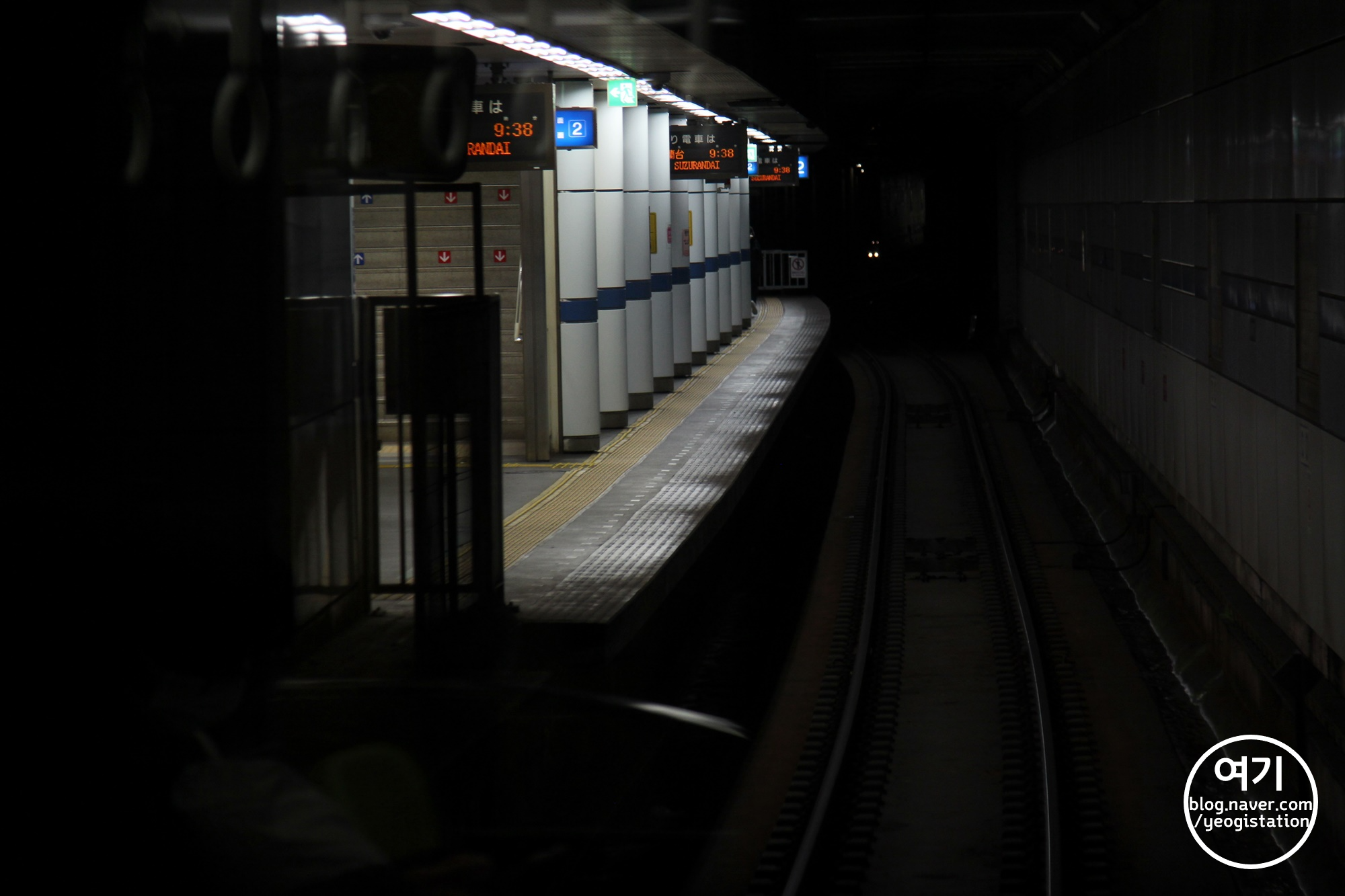 열차가 곧바로 도착해버렸기에 우선 열차에 탑승한 뒤에 뒷쪽 운전석 창문을 통해 미나토가와역을 촬영해 보았습니다. 여기도 지하 역인지라 터널 안에서 찍었는데도 용케 흔들림이 심하지 않게 나왔네요.