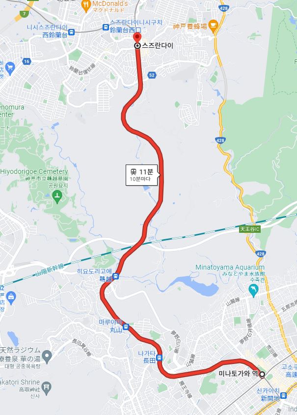 미나토가와역을 출발한 뒤에 지상으로 올라와 달리기 시작하는 고베전철 아리마선(有馬線). 일본에서도 상당히 인지도 있는 온천인 아리마 온천(有馬温泉)을 이 노선을 통해 갈 수 있습니다. 다른게 아니라 이 노선의 종점이 아리마온센(有馬温泉)역이에요.