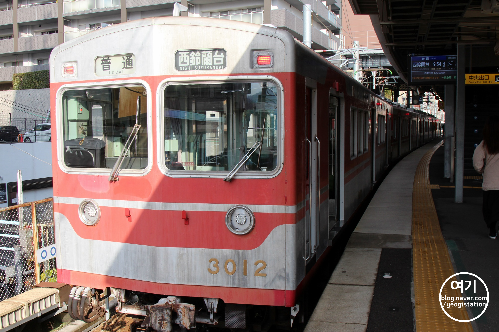 이번에는 4번 홈의 니시스즈란다이(西鈴蘭台)행 보통열차(3000계). 니시스즈란다이역은 이 역의 다다음역이기 때문에 얼마 못가 종점에 도착하게 되겠군요. 이렇듯 아오선의 끝인 아오역까지 가는 열차는... 평시에는 1시간에 1대 뿐이고 다른 열차들은 이렇게 중간까지만 갑니다.