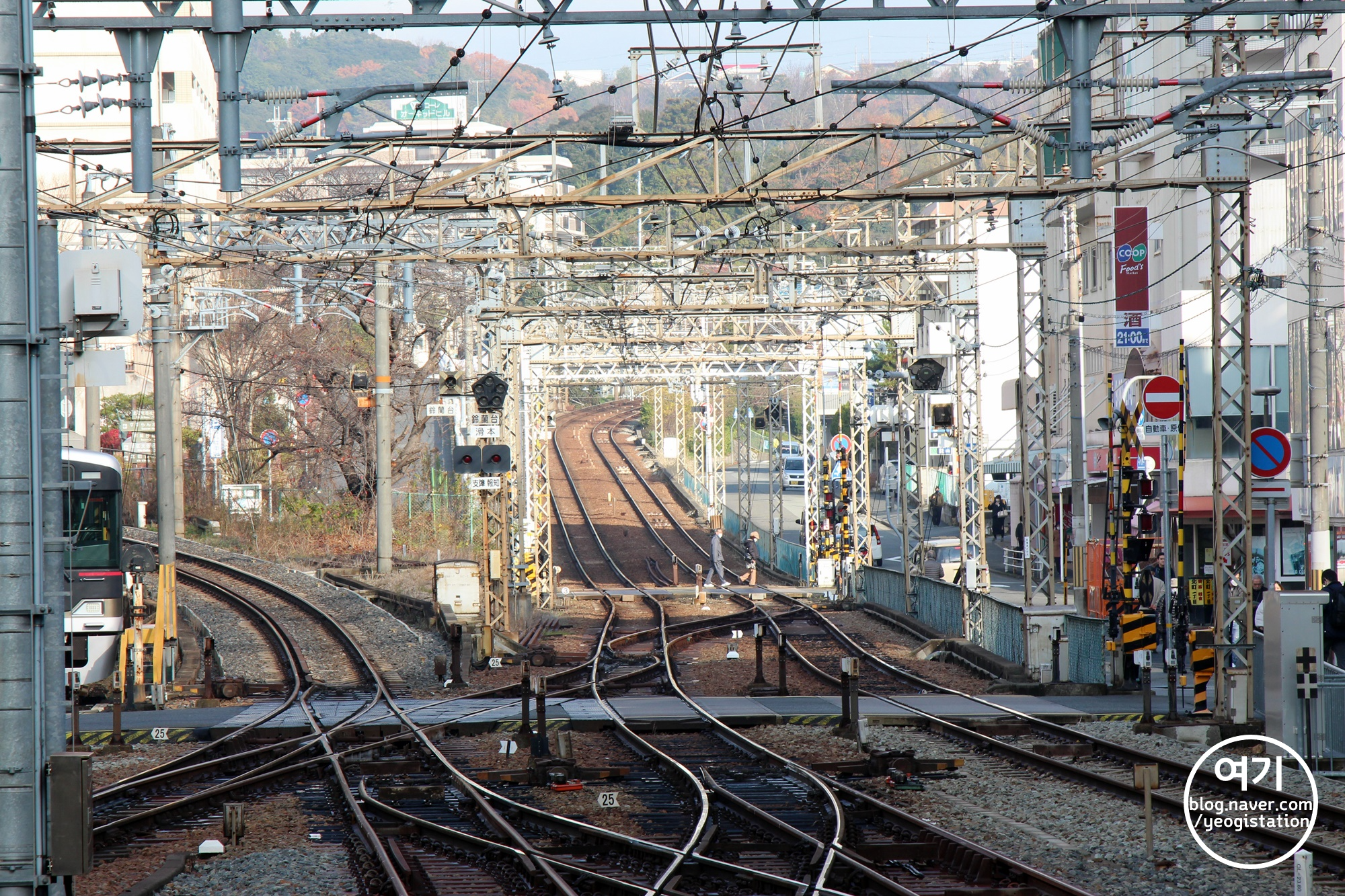 사진 왼쪽으로 뻗어나가는 단선의 아오선(粟生線)과 정면으로 뻗어나가는 복선의 아리마선(有馬線). 그렇다고 두 노선이 100% 단선, 복선인 것은 아니지만 아오선은 노선이 긴 것에 비해 열차 운행의 비중이 그렇게 큰 편은 아닌 듯 하여 상당구간이 단선으로 운행되고 있습니다. 특히 종점 아오(粟生)역은 평시엔 열차가 한시간에 한대 있는 듯.
