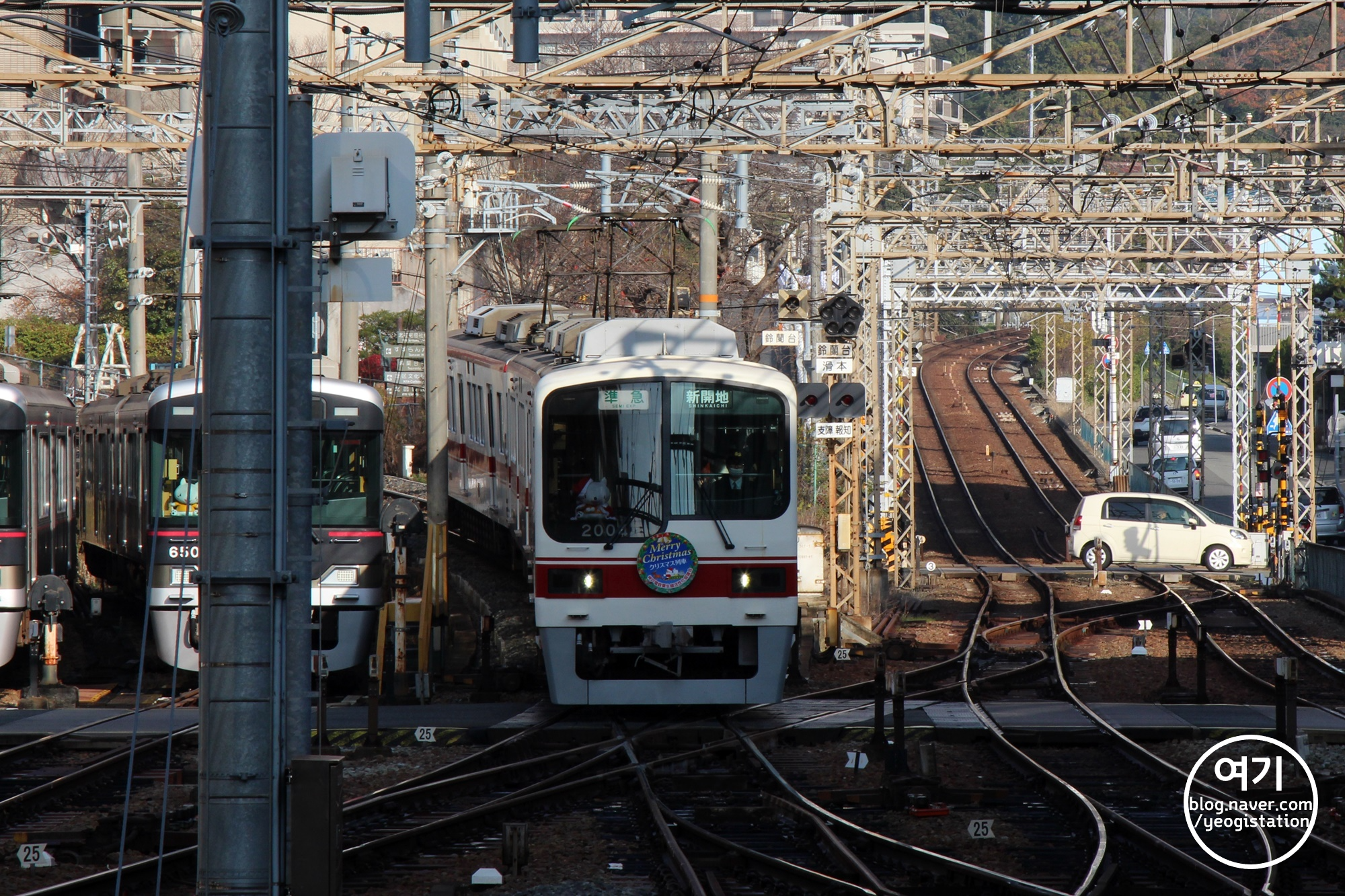 아오선 방면에서 들어오는 신카이치(新開地)행 준급행 열차. 그러고보면 제가 타고온 열차도 준급행이었는데요. 고베 전철에서의 준급행은... 스즈란다이역에 오기 전의 두 역인 마루야마(丸山)역, 히요도리고에(鵯越駅)만을 통과하고 스즈란다이역을 지난 뒤의 모든 역은 다 정차하기때문에 사실상 보통열차처럼 운행이 되고 있는것이 특징이에요.
