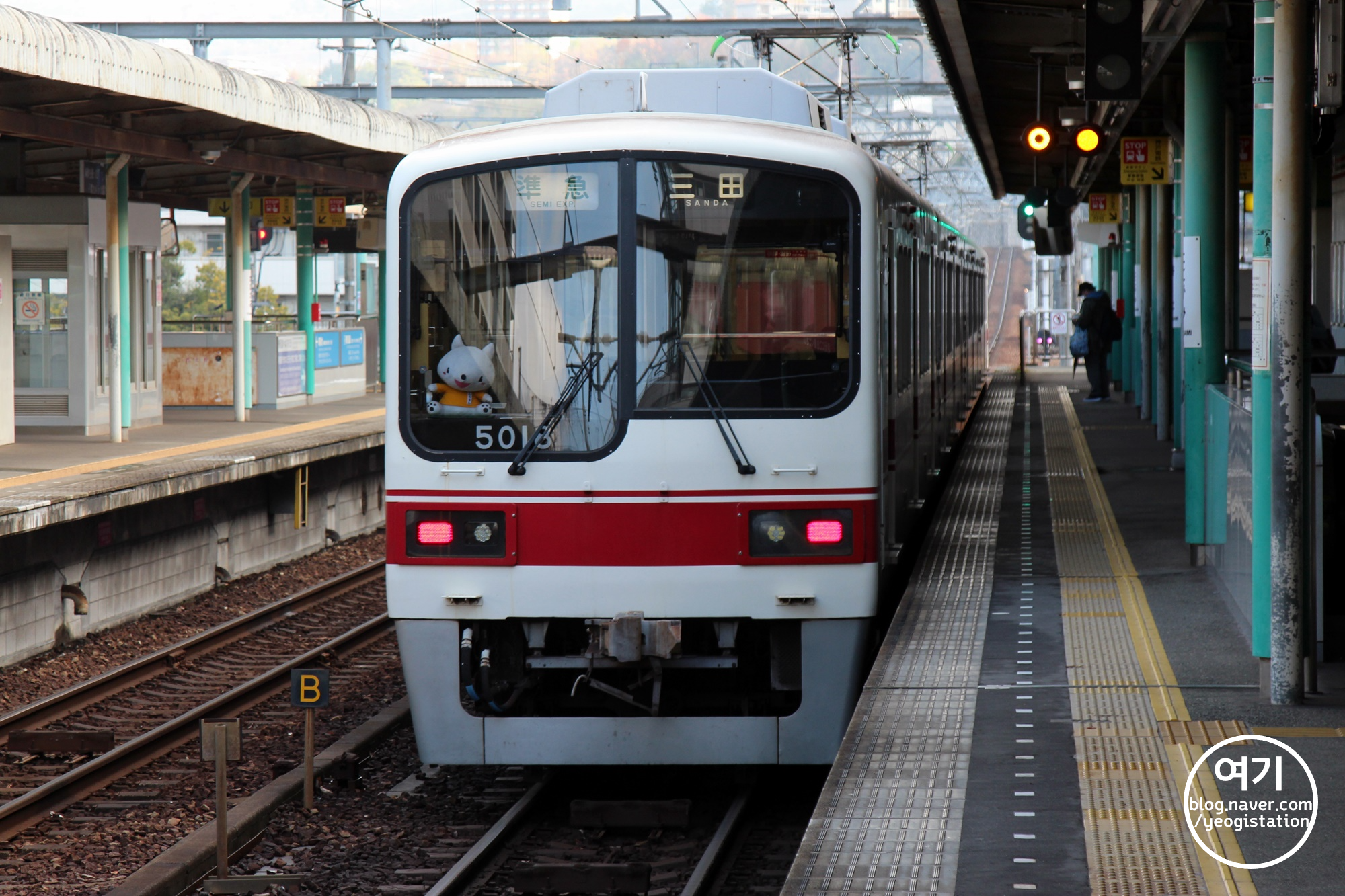 스즈란다이역에서의 15분간의 머무름을 마친 후 산다(三田)행 준급행열차에 탑승했습니다. 그리고 4정거장 떨어진 이곳에서 하차하였는데요.