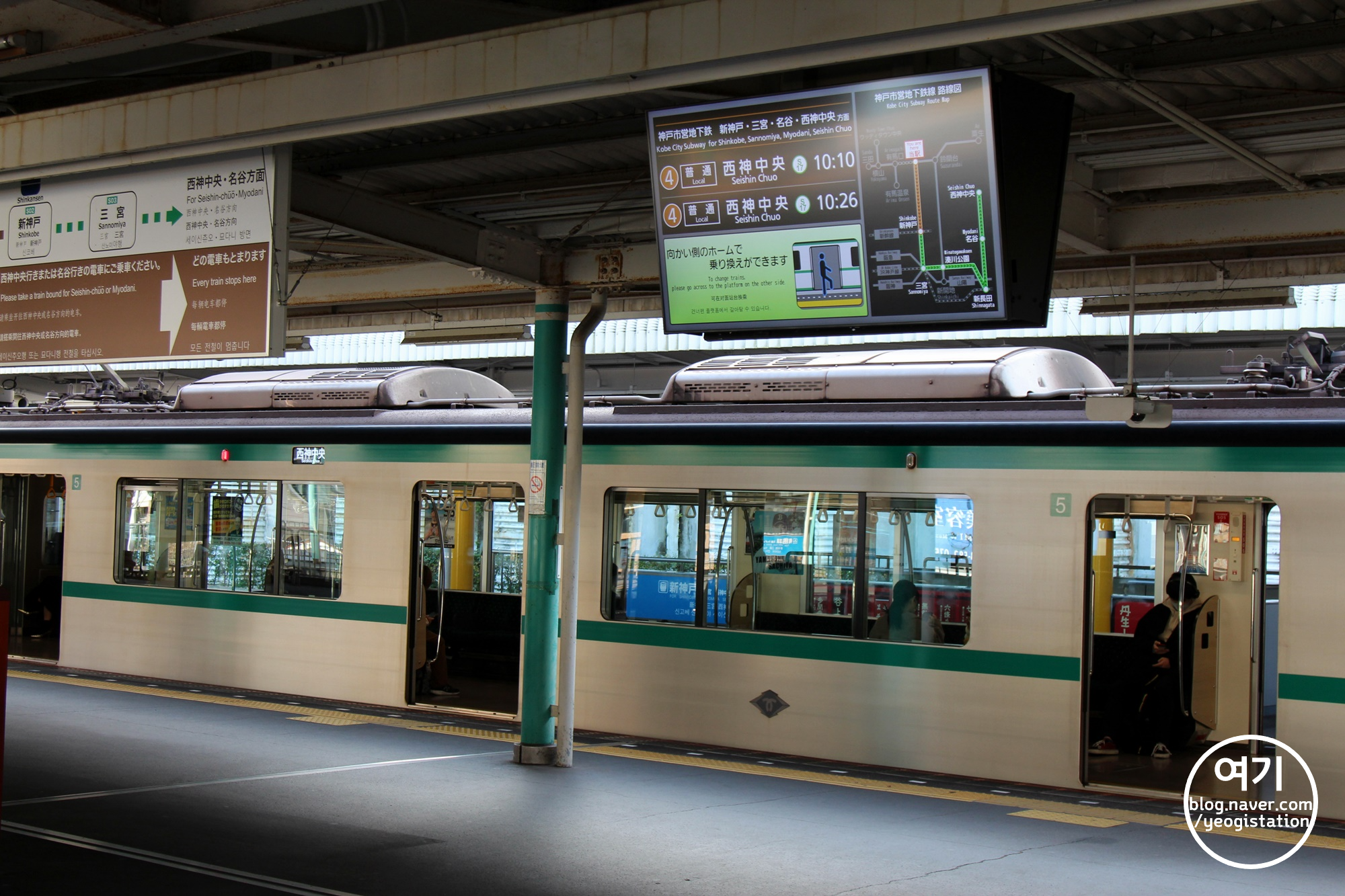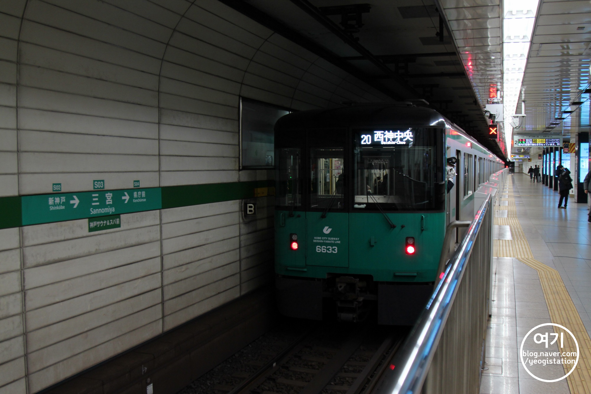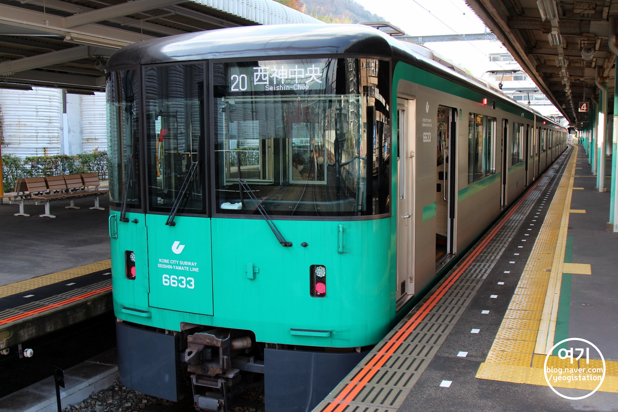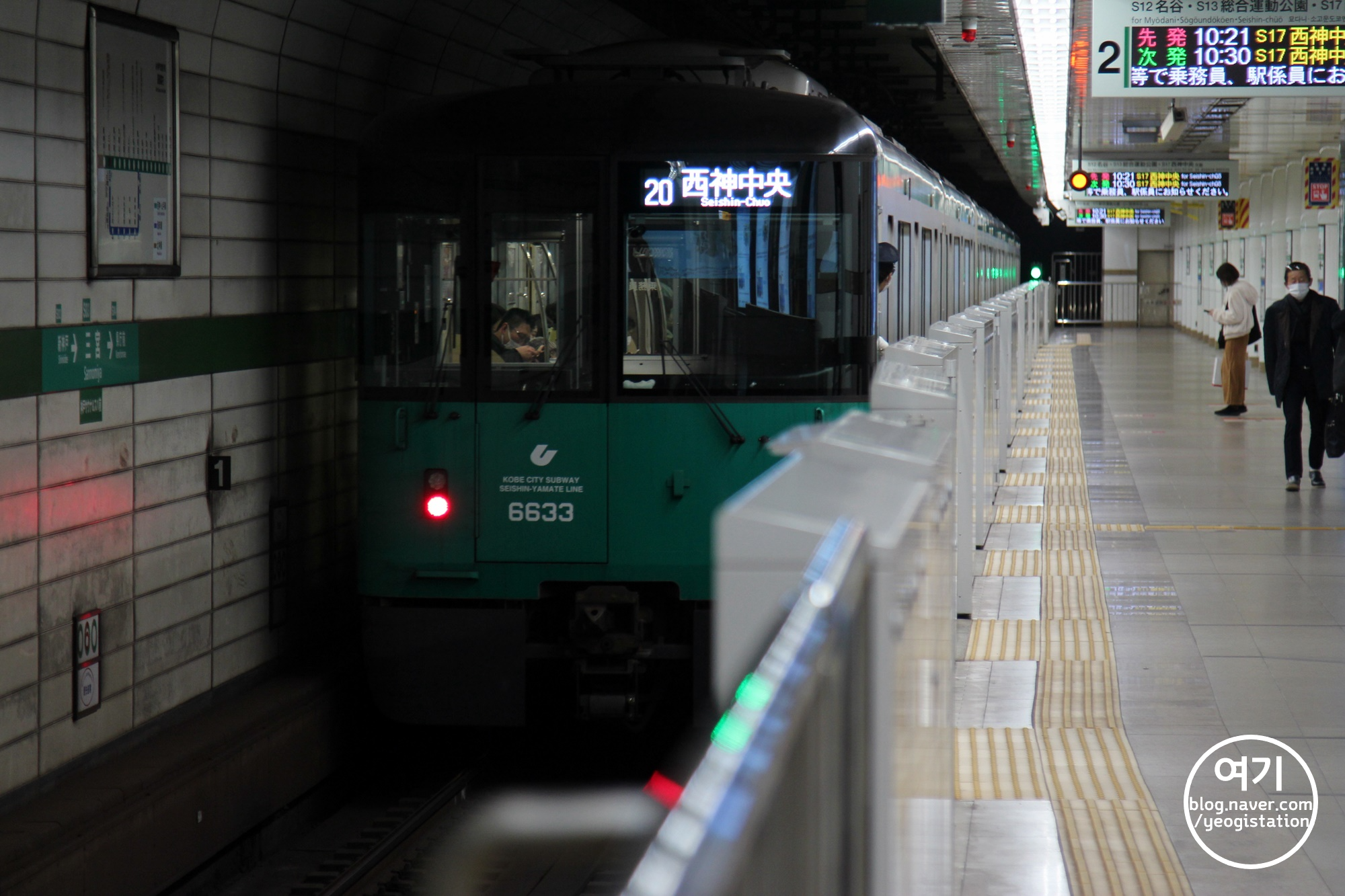 제가 하차한 고베 전철의 홈 바로 건너편 홈에 고베 지하철 호쿠신선+세이신·야마테선(西神・山手線) 직결 세이신츄오(西神中央)행 열차가 대기중입니다. 고베 전철 타니가미역 승강장은 원래대로라면 상, 하행선 승강장이 따로 존재하지만, 열차가 바쁘지 않은 시간대에는 환승을 편하게 하기 위해 하나의 홈에 양방향 열차를 모두 정차시키고 있지요.