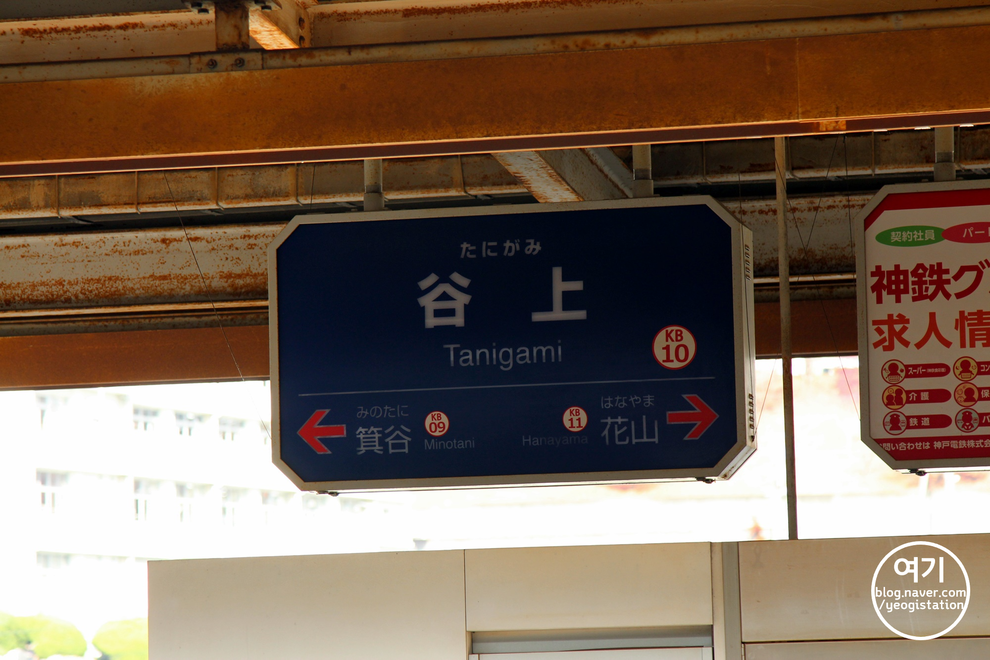 이번에 하차한 역의 이름은 타니가미(谷上)역.