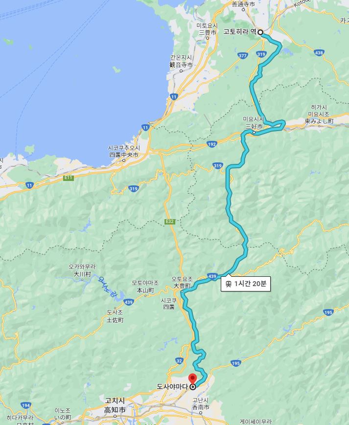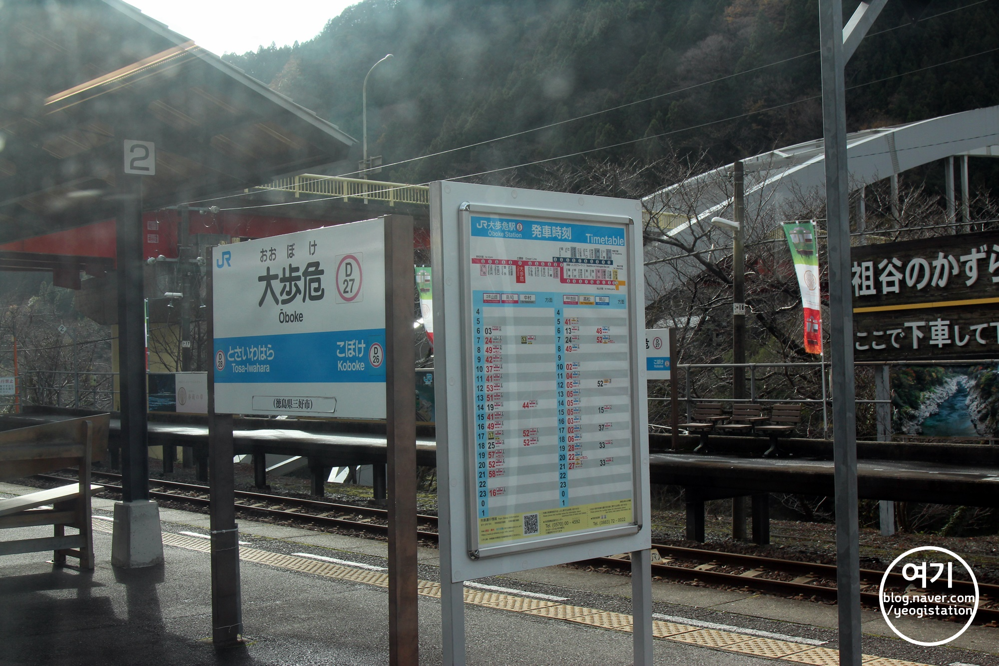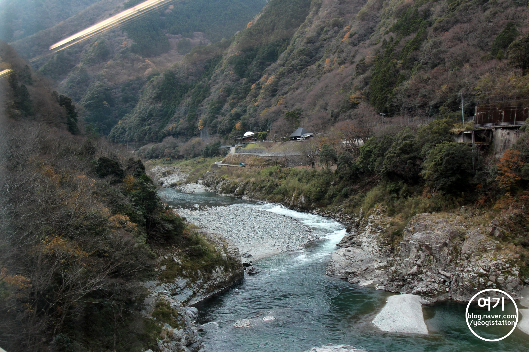 이어서 도산선은 산지의 계곡을 사이를 헤쳐나갑니다. 토쿠시마현(徳島県)의 끄트머리에 위치한 코보케(小歩危)역-오보케(大歩危)역을 지나는 구간이었는데요. 한국의 관광열차 V-Train을 탔을때처럼 생각보다 엄청난 협곡 풍경이 펼쳐져서 놀랐던 기억이 납니다. 어떻게 동영상으로 남겨보려고 했었는데 나무에 가리고 터널에 가려서 그냥 올리지 않기로 합니다...
