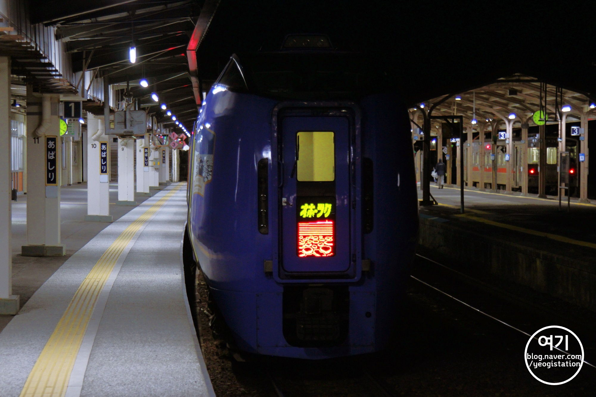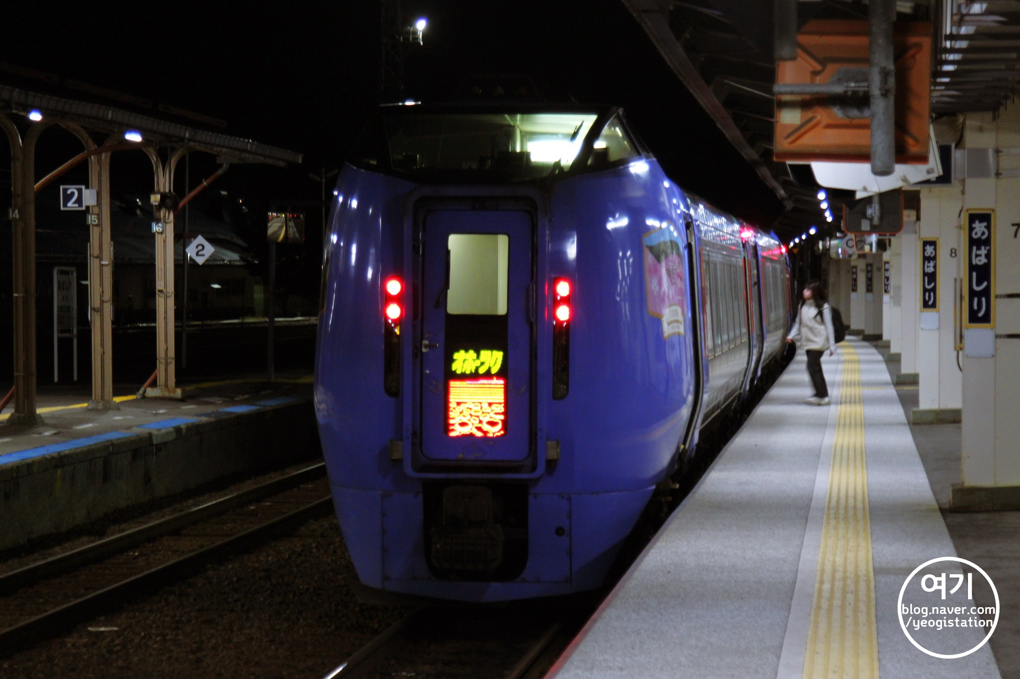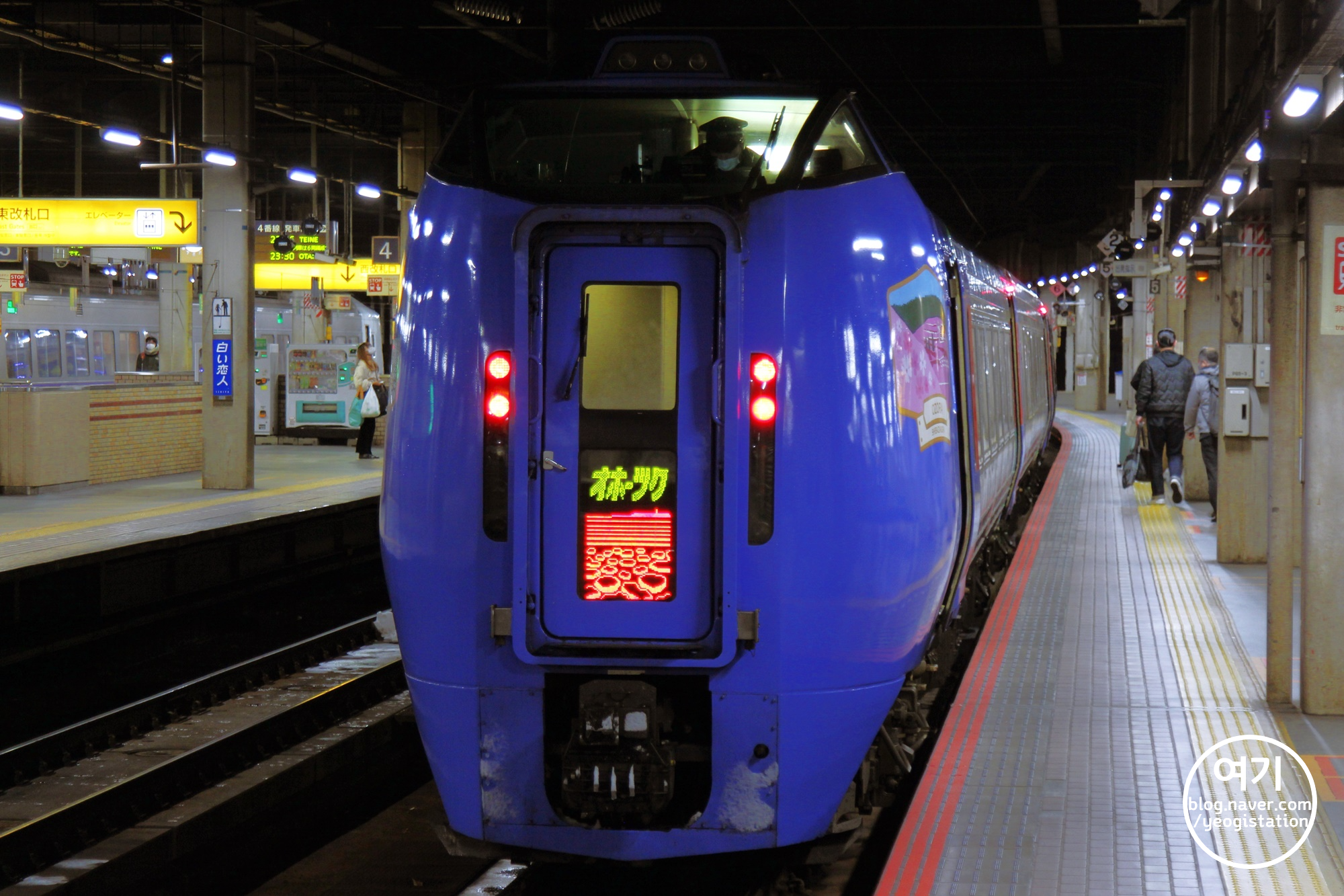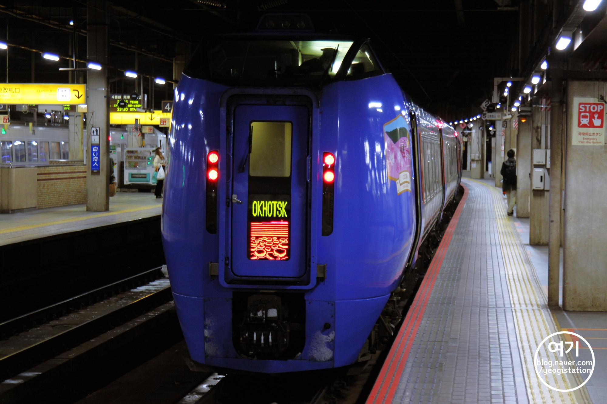 이 열차를 타고... 장장 5시간 반... 일본 최북단을 가는 특급 소야(宗谷)보다도 소요시간이 긴... 특급 오호츠크의 아바시리→삿포로 귀환 여정을 시작해보도록 하겠습니다. 물론 지쳐서 잠듬. Zzz...