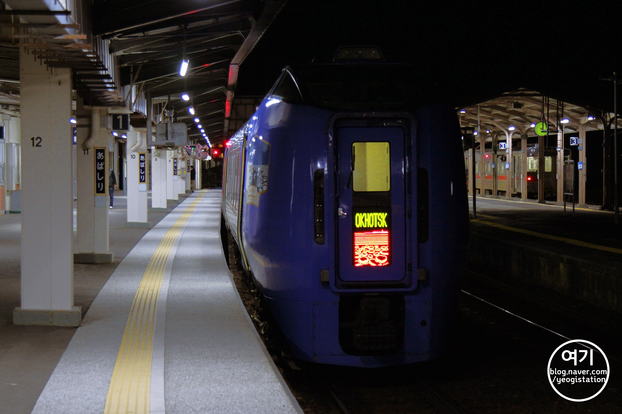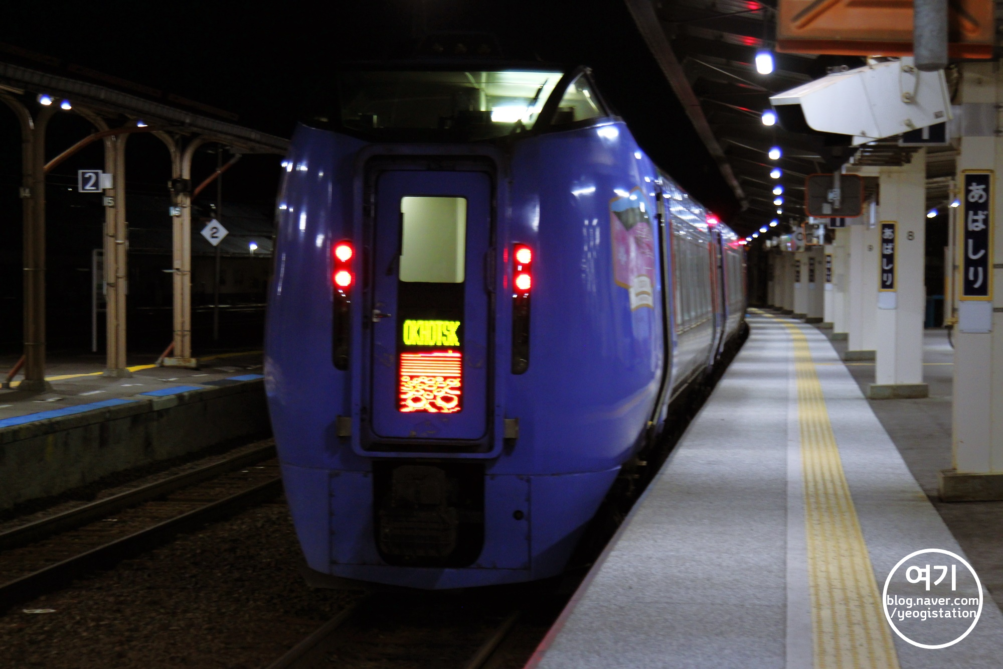 삿포로(札幌)와 아바시리를 잇는 특급 오호츠크(オホーツク). 키하283계 동차로 운행되는 이 특급열차는 아바시리가 면하고 있는 바다 오호츠크해(オホーツク海)에서 유래하였으며 전편에서도 언급했듯이 겨울엔 유빙으로 유명한 곳이기도 합니다. 위 사진의 특급열차 전면에도... 제가 보기엔 유빙이 떠있는 바다를 묘사한 그림인 것 같은데 맞겠죠?ㅋㅋ
