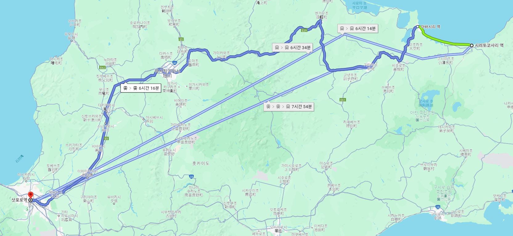 하여튼 엔가루역을 출발해 마루셋푸(丸瀬布), 시라타키(白滝), 카미카와(上川). 그리고 아사히카와(旭川)역을 지나 하코다테 본선(函館本線) 루트로 삿포로까지.