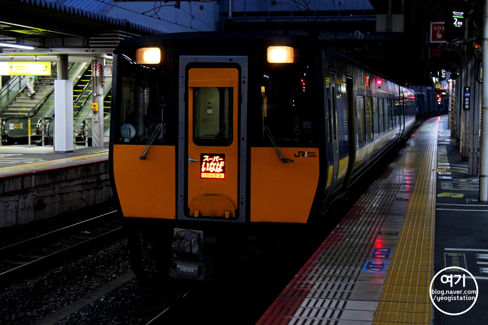 그렇게 6시 46분에 오카야마역을 출발하여 돗토리(鳥取)역으로 향하는 특급열차 슈퍼 이나바(スーパーいなば)에 탑승합니다. 신칸센의 도착시간으로부터 특급열차로 갈아탈 환승시간이 몇분 주어지지 않기 때문에, 허겁지겁 재래선 승강장으로 들어온 여기. 게다가 이 특급열차는 모든 좌석이 지정석이라 지정석권도 꼭 가지고 있어야 했는데, 이건 히로시마역에서 미리 발권을 하고 왔기 때문에 OK.