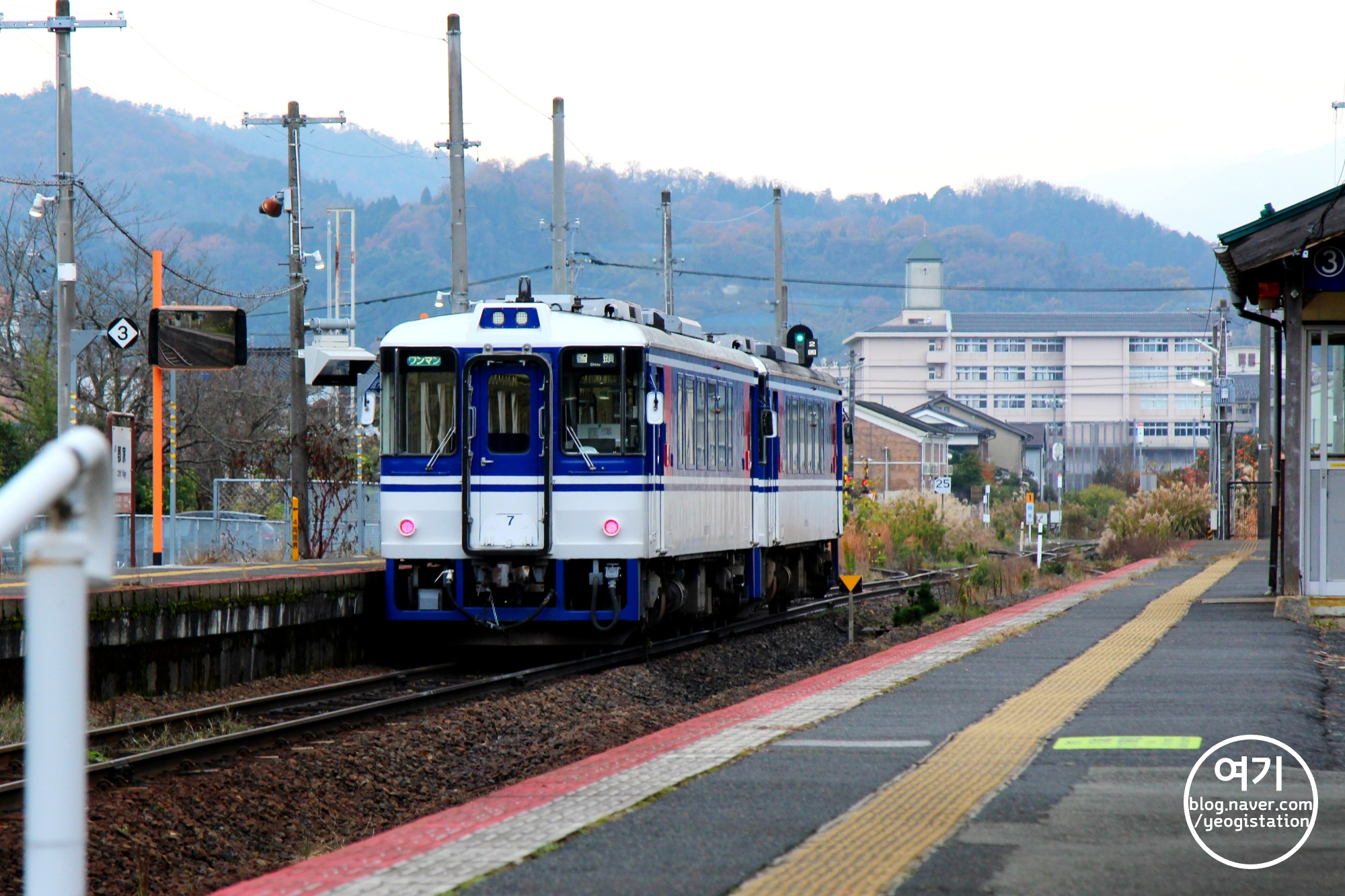 반대 방향으로 코게역을 떠나는 치즈행 보통열차. 그런데 이 열차는 JR의 차량이 아니라 치즈 급행이 소유한 HOT3500형이라는 것.