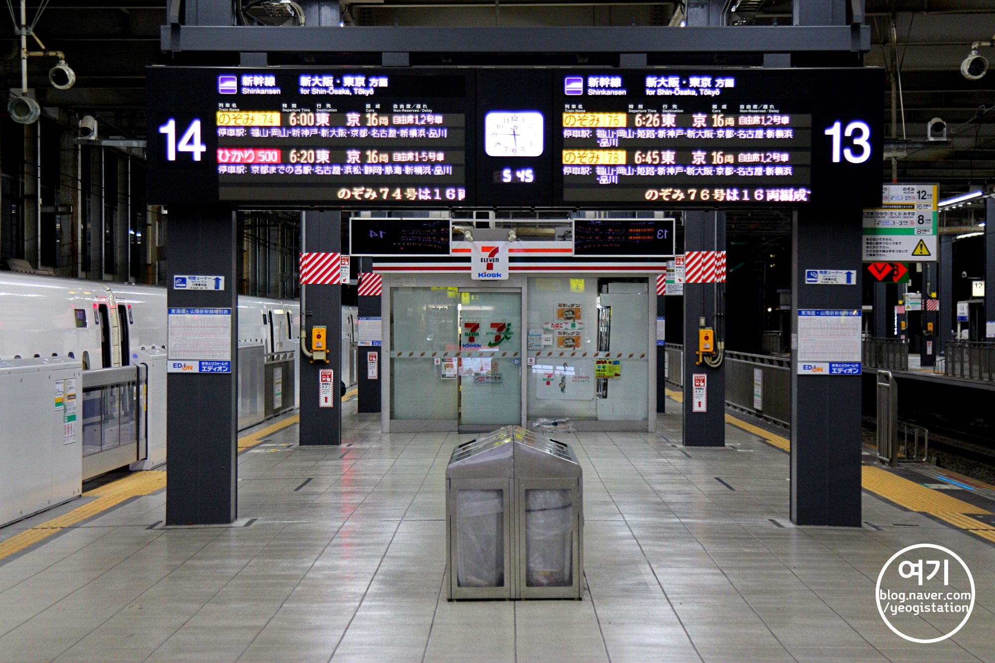 히로시마역에서 가장 이른 시간에 출발하는 신칸센 첫차, 바로 6시 정각의 도쿄행 신칸센 노조미(のぞみ)입니다. 후쿠야마(福山)역에 정차한 후 오카야마(岡山)역에 정차하는 신칸센인데, 제가 이번에 하루하루 철도여행 루트를 짜보려 하니 뭘해도 오카야마역을 거치지 않을수가 없더군요.