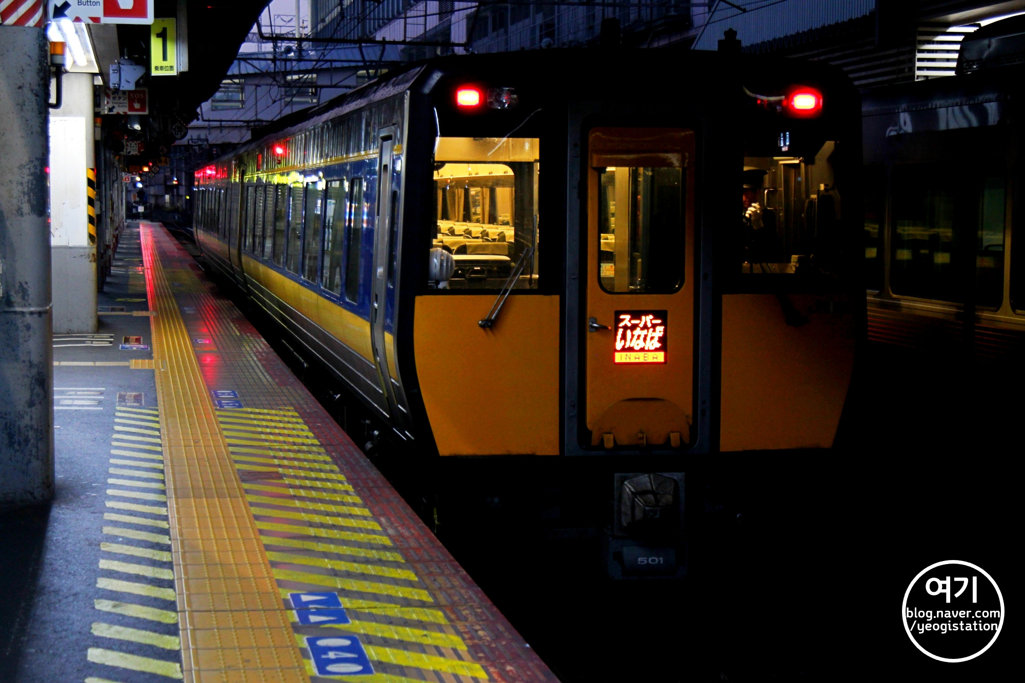 슈퍼 이나바가 출발하기 전에 다른 열차도 촬영해보는 여유. 보이는 차량은 115계라고 하는데... 오른쪽 차량은 개조차량으로서, 일반적인 115계와는 다르게 전면부에 문짝이 달려있지 않고 평평한 모양이라 마치 103계를 보는것 같다는 감상이 있네요.