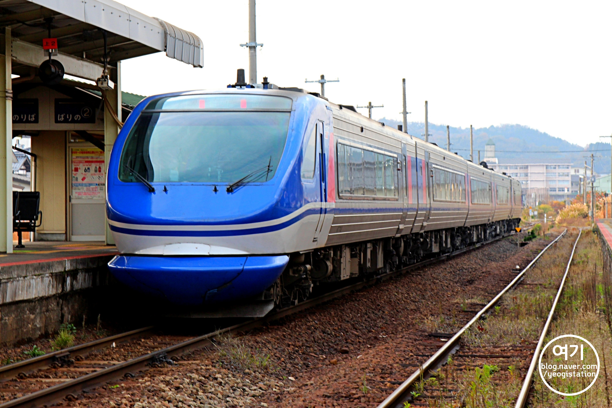 역에 도착하자마자 떠나가는 특급 슈퍼 이나바를 포함해서 열차 사진부터 좀 찍어보고, 이어서 돗토리시의 남쪽에 위치한 야즈정(八頭町)의 중심역이라 할 수 있는 코게(郡家)역 역사를 촬영해봅니다. 대략 아침 8시 반이 된 시간... 히로시마역에서 신칸센을 타기 전에 먹었던 빵 하나로 버티기엔 배가 고프다.