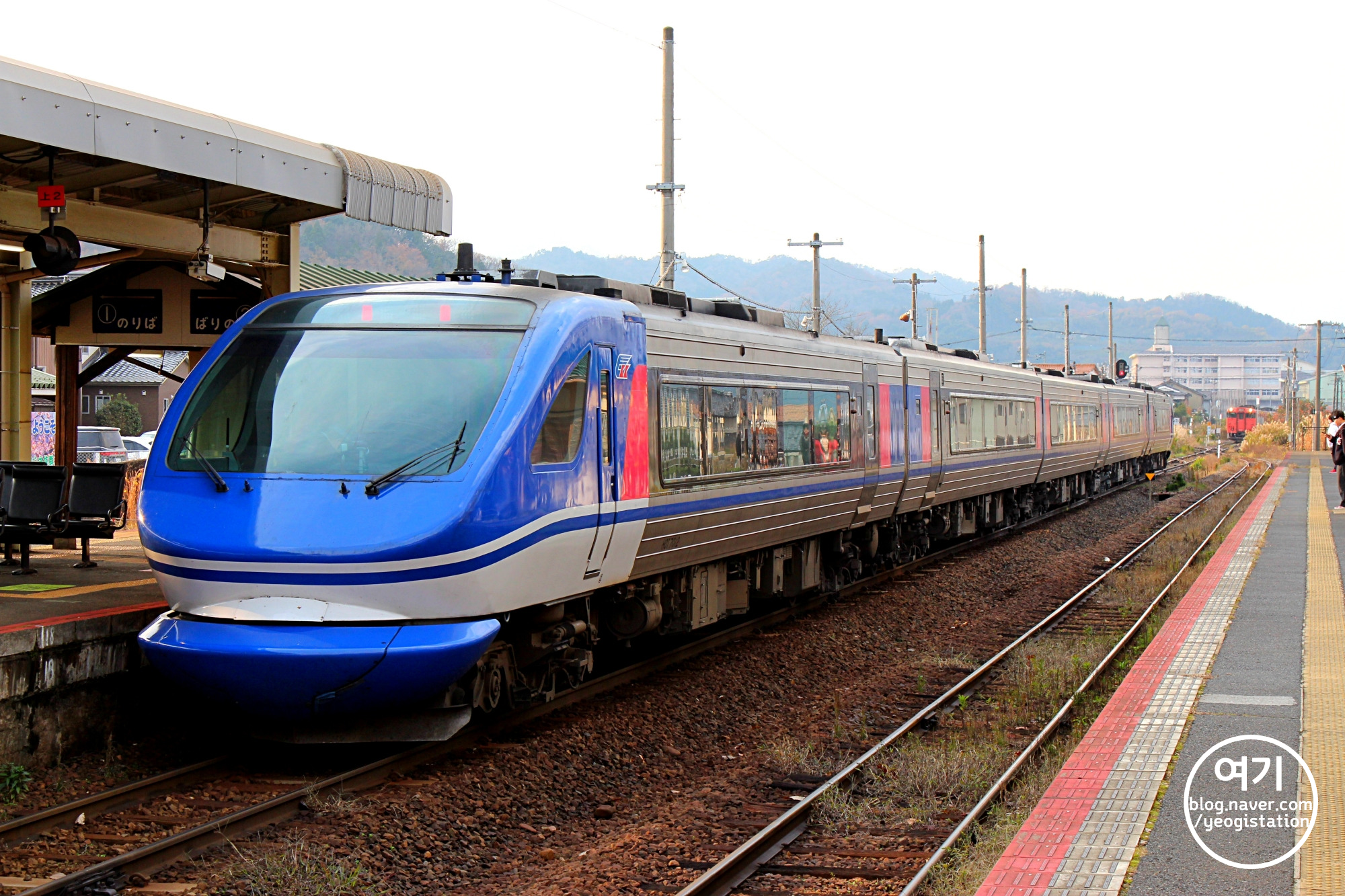 이 슈퍼 하쿠토는 JR이 아닌 이 열차의 경로 중간 지름길(?)에 해당하는 별도의 사철노선을 운영하는 치즈급행(智頭急行)이 소유한 HOT7000계 동차로 운행되고 있습니다. 7000계면 7000계지 'HOT'7000계는 뭔가 했더니 열차가 경유하는 지방인 효고현, 오카야마현, 돗토리현의 알파벳 앞글자를 따온 것이라고 하네요.