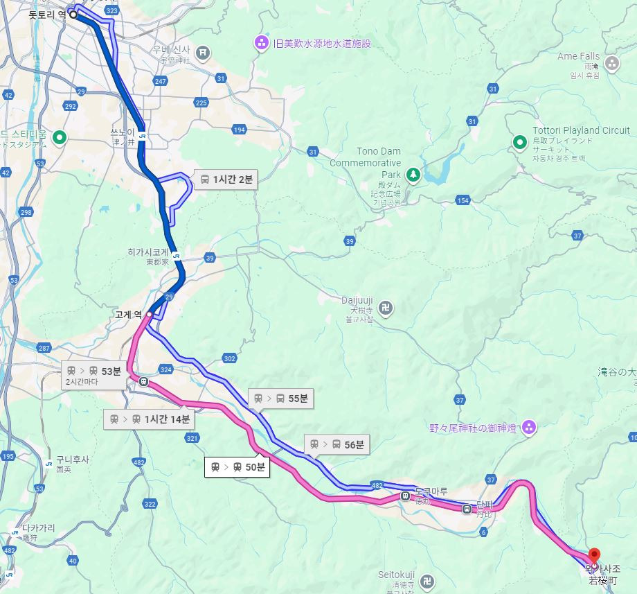 지도로 보니까 이 고등학교는 JR서일본의 인비선(因美線)과 와카사선이 분기된지 얼마 안된 지점에, 두 노선 사이의 땅에 딱 지어져있는 모양인데 학창시절 내내 열차구경하긴 좋을 듯ㅎㅎ