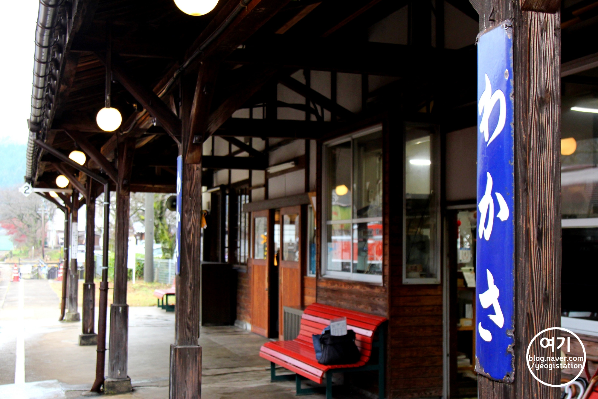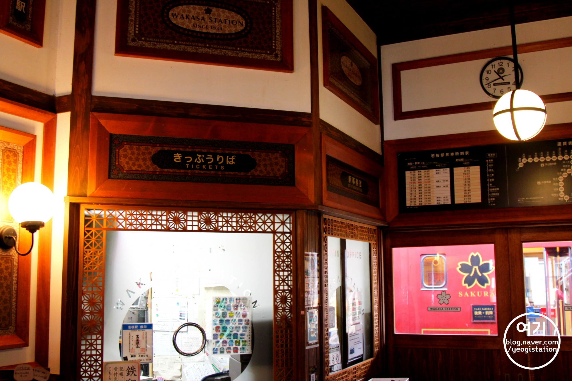 고풍스러운 분위기로 꾸며져 있는 와카사역 내부 대합실. 바로 옆에 별도의 승객 대기공간이 있어서 매표소가 있는 이곳은 그렇게 넓진 않네요.