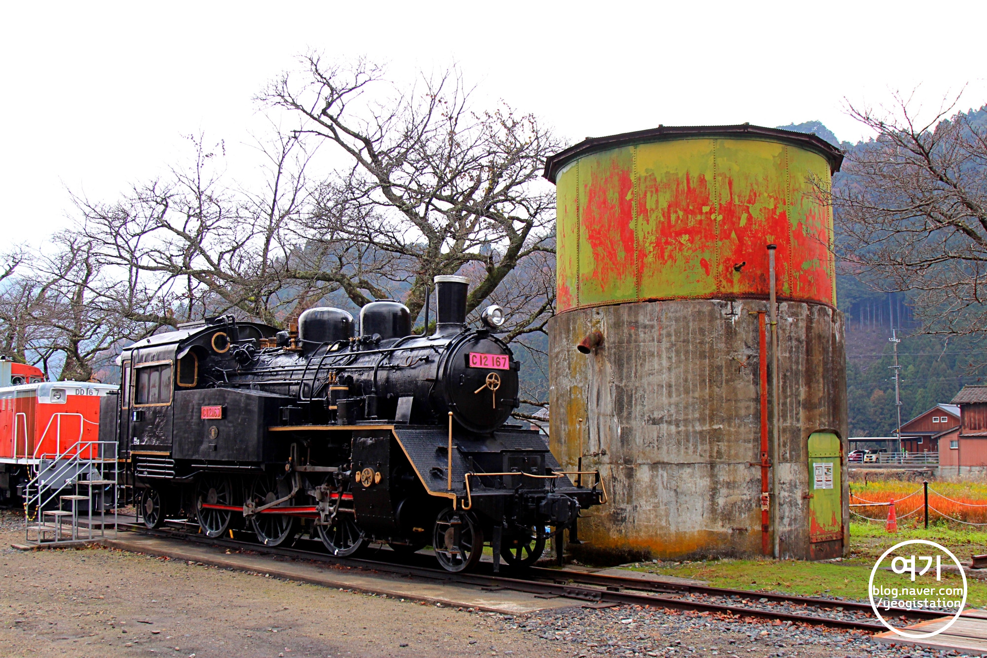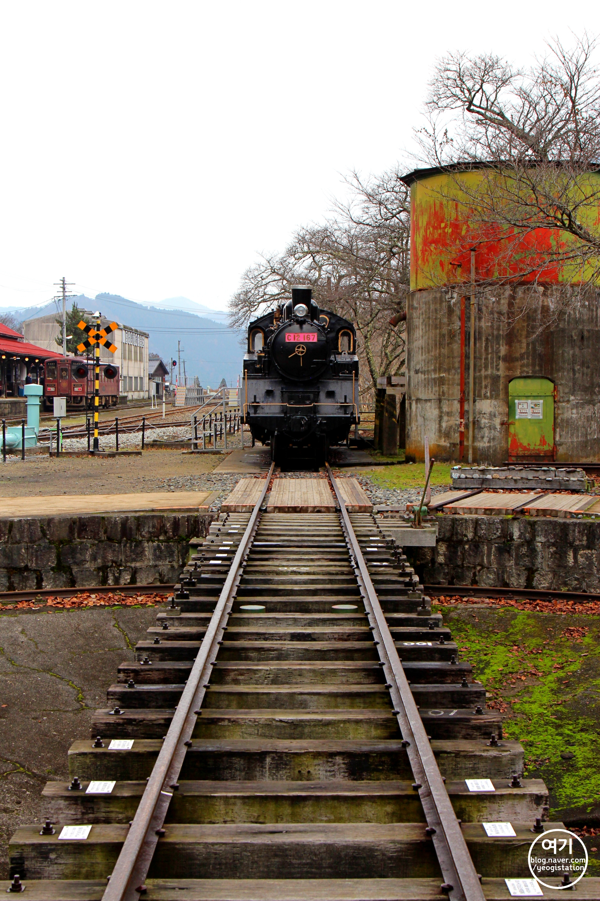 일단 구내에는 C12형 증기기관차의 167호가 배치되어 있는것을 볼 수 있습니다. 보존상태가 좋아서 뒤에 같이 있는 DD16형 기관차와 함께 한달에 한번정도 체험운전 이벤트의 형태로 운행을 뛰기도 하는데요.(4~10월에만 하는 듯)
