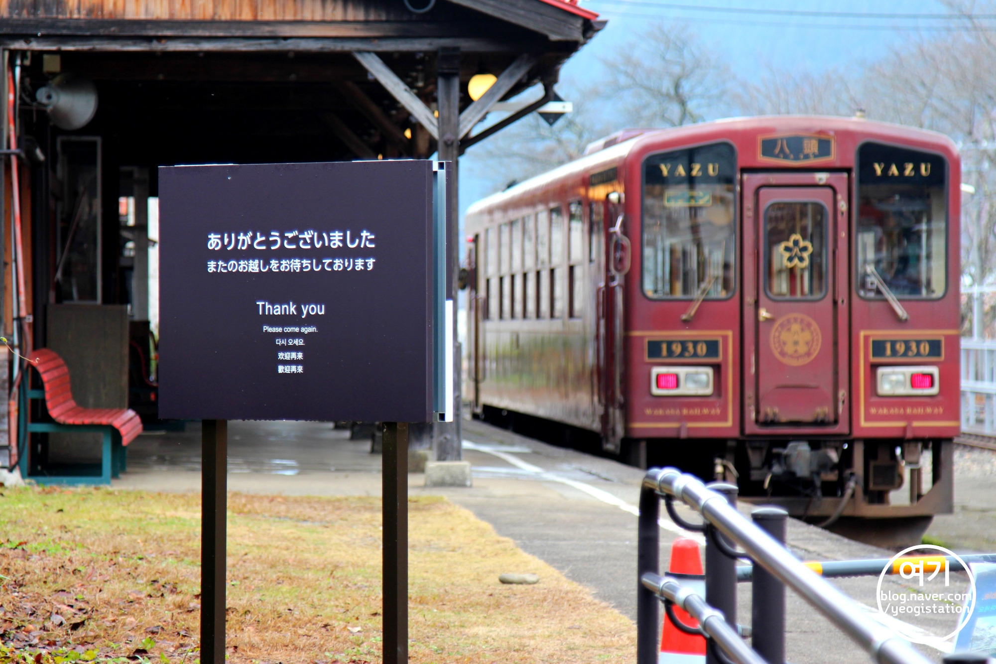 감사하게도 역의 길 건너편에 슈퍼마켓이 있어 대충 먹을거리를 사고, 그 김에 역사도 마지막으로 한번 더 바라본 후에, 돗토리역으로 떠나는 와카사선 열차에 탑승합니다.