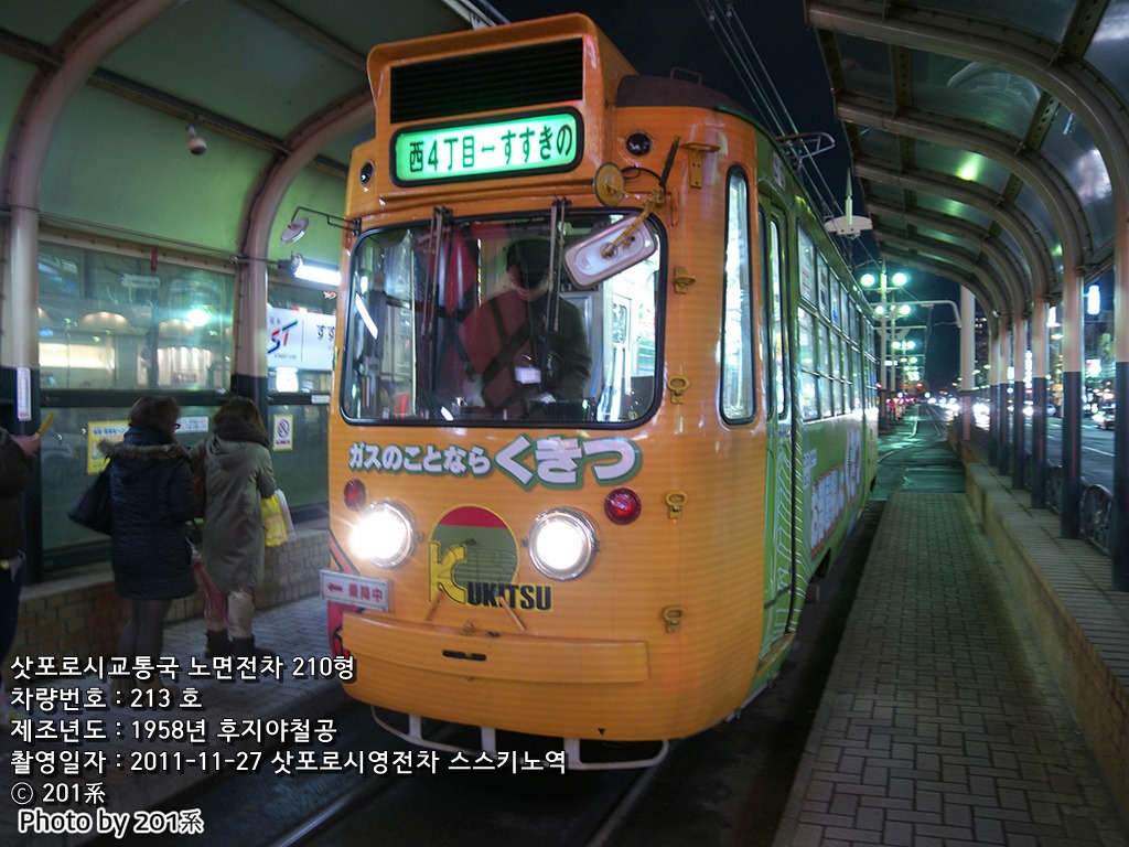 삿포로시교통국 소속 노면전차 210형은 1958년부터 도입된 노면전차 차량으로, 총 6량이 제조되었다. 330형을 모델로 <삿포로 스타일>로 불리는 차체 구조를 지녔으며, 둥근 형태의 통유리 전면창을 채용하였다. 홋카이도 내에서 제조되었으며, 삿포로종합철공 공동조합에서 제조하여 운수공업 / 타이와차량 / 후지야철공 등 조합 내의 3개 회사에서 각각 제조를 도맡았다. 폐차되었던 110형/120형의 주요기기를 유용하여 제조되었다.