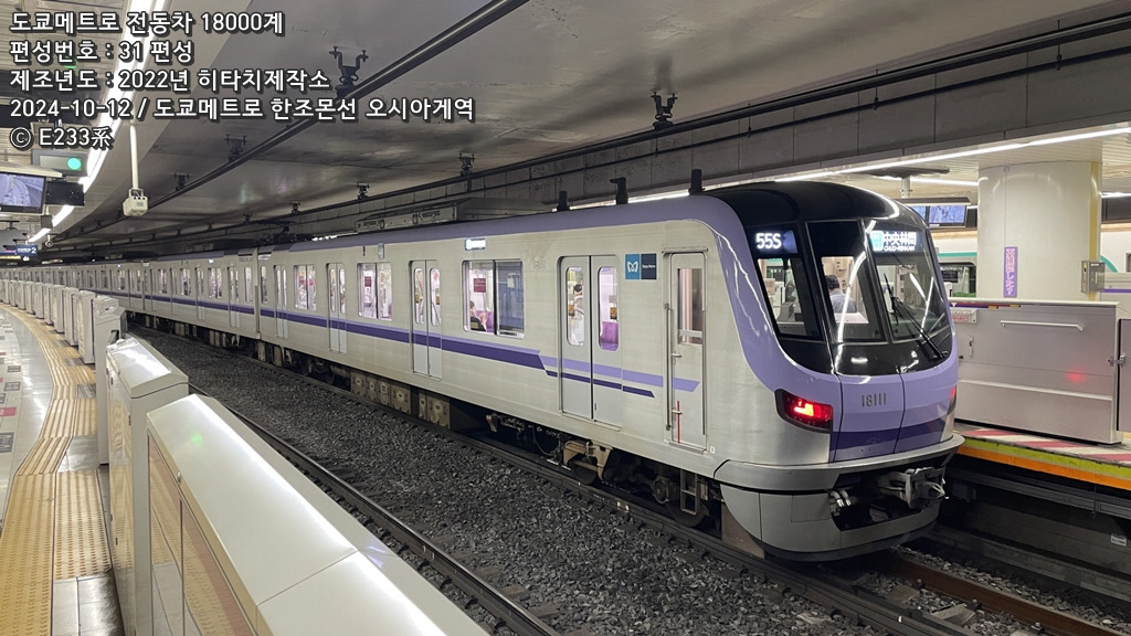 도쿄메트로 18000계는 기존 한조몬선을 운행하던 8000계의 후계차량으로, 2021년 8월 7일부터 영업운전을 시작하였다. 1980년대부터 40년 넘게 운행해 온 8000계를 교체하기 위해 도입했으며, 08계 이후 18년만의 한조몬선 신형 차량이다. 2021년 10월 20일 굿디자인상을 수상하였다.