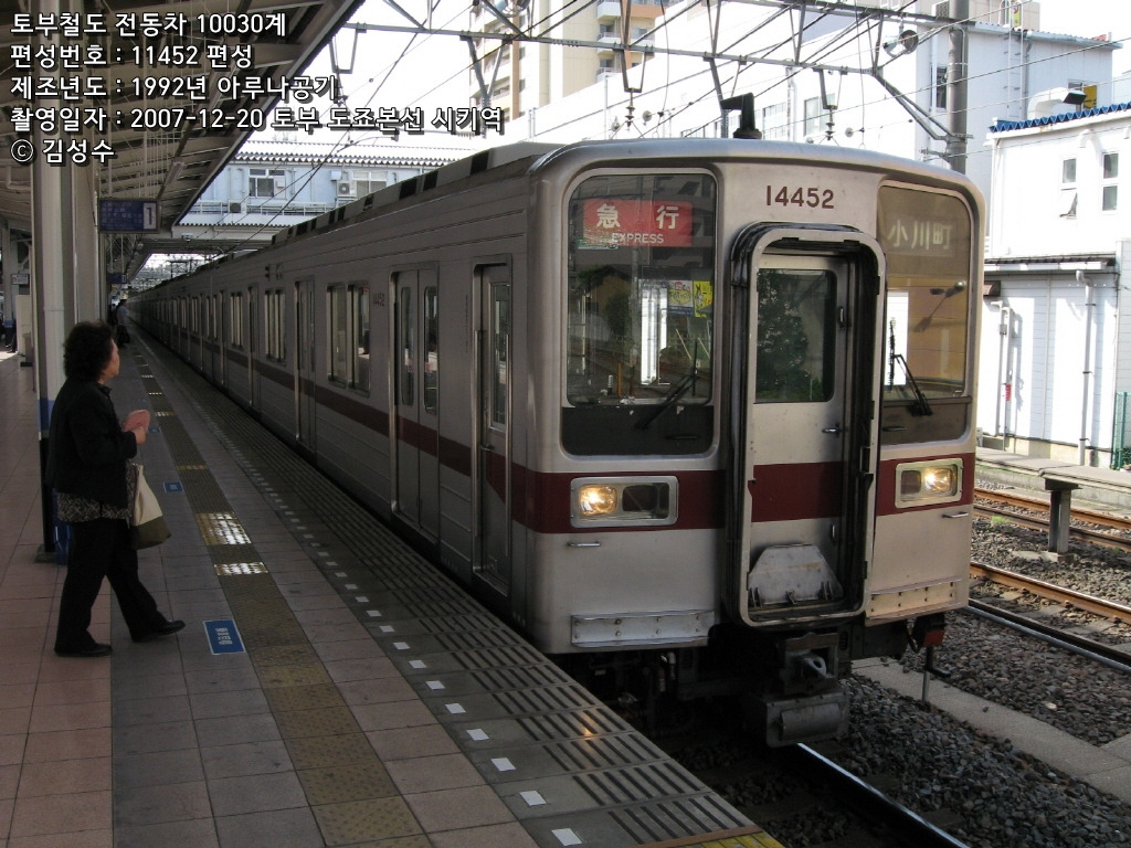 토부 10030계 전동차는 1988년 4월부터 등장한 전동차로, 10000계의 마이너 체인지 버전으로 등장하였으며 이세사키선/닛코선용 차량부터 등장했다. 10량/6량/4량/2량편성으로 생산되었으며, 10000계와 동일한 로얄 마룬의 띠 도색으로 되어 있으며 스테인리스 비드차체를 채용해서 기존 10000계와 비교해서 외관의 변화가 많다. 대차는 볼스터리스 대차를 탑재하였으며 보조전원장치도 SIV를 채용하였다.