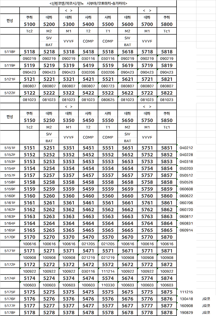 5166~5169편성 및 5173편성은 10량화가 되어 4000번대로 넘어갔기 때문에 현재는 총 25편성이 활동하고 있다.