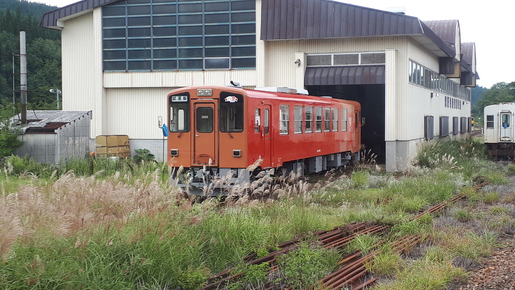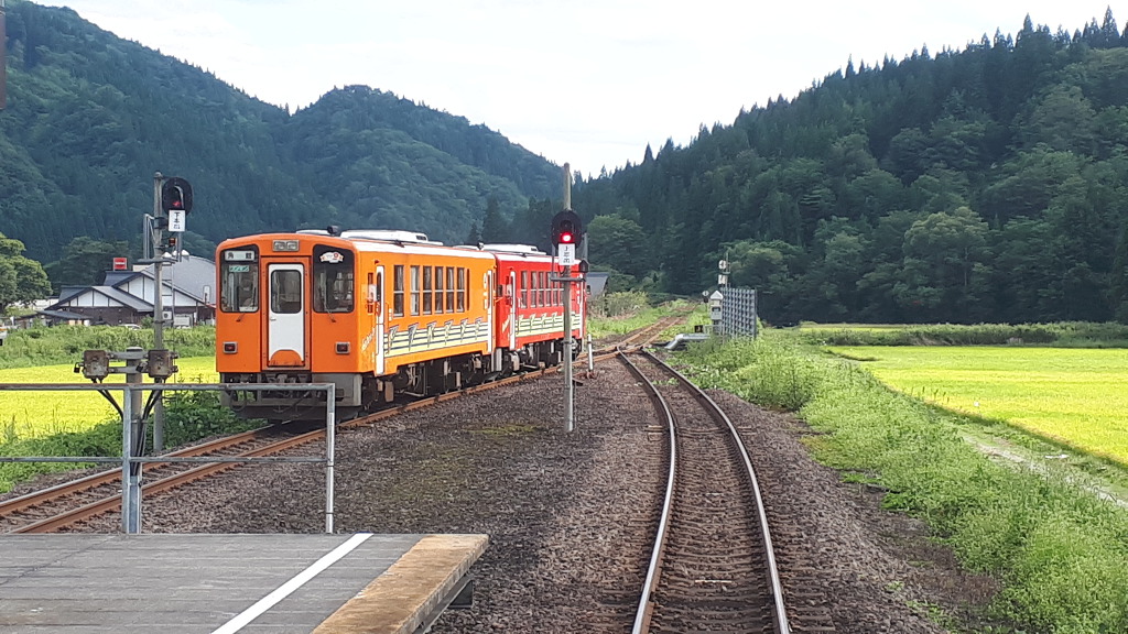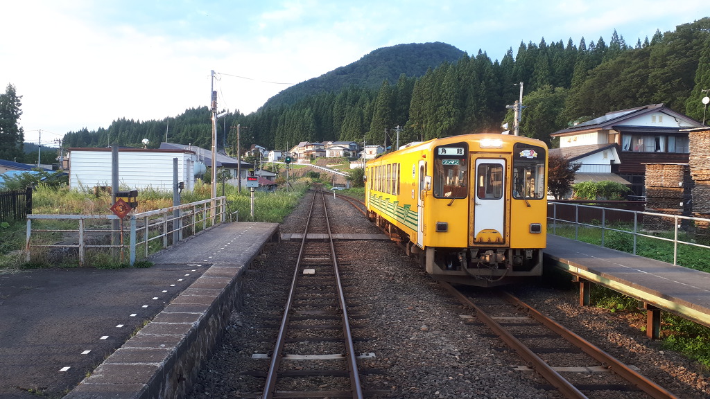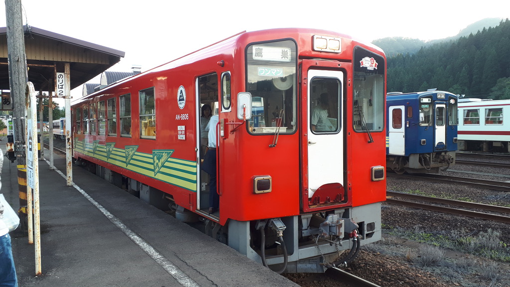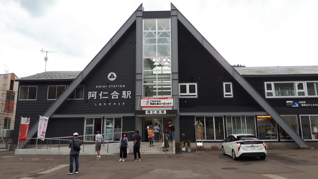 아키타내륙철도의 차량기지가 있는 아니아이역에 진입중입니다~
