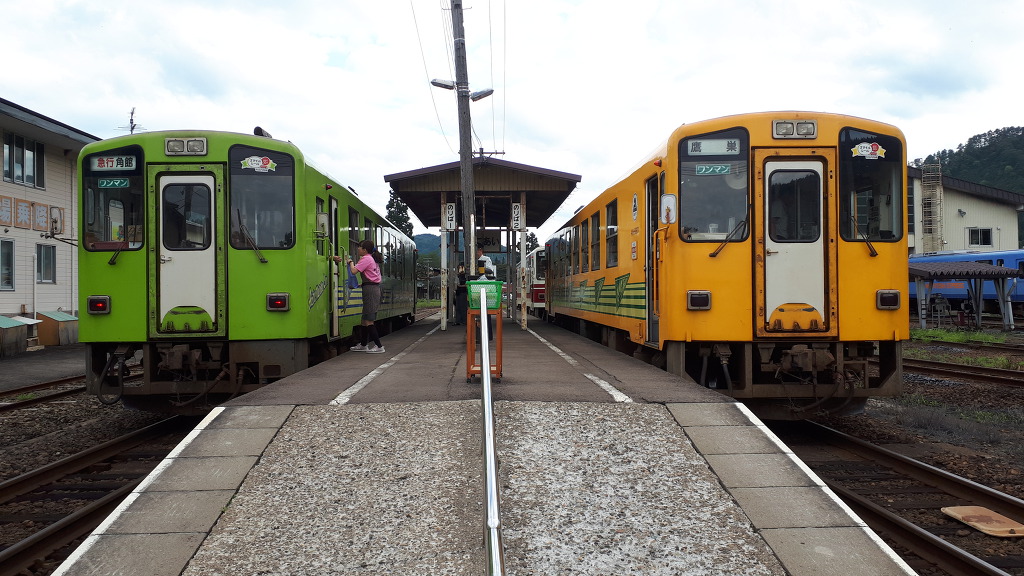 이름이 기억안나는 어느 역에서 2량짜리 열차와 교행을ㅎㅎㅎ