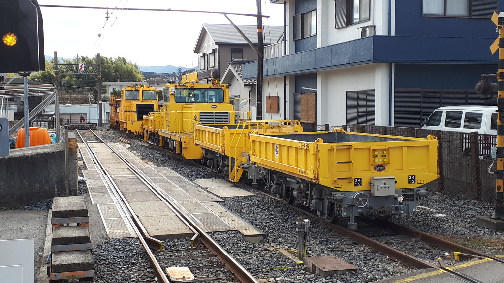 키시역 맨 끝에서 단체로 휴식중인 공사용열차들입니다^^