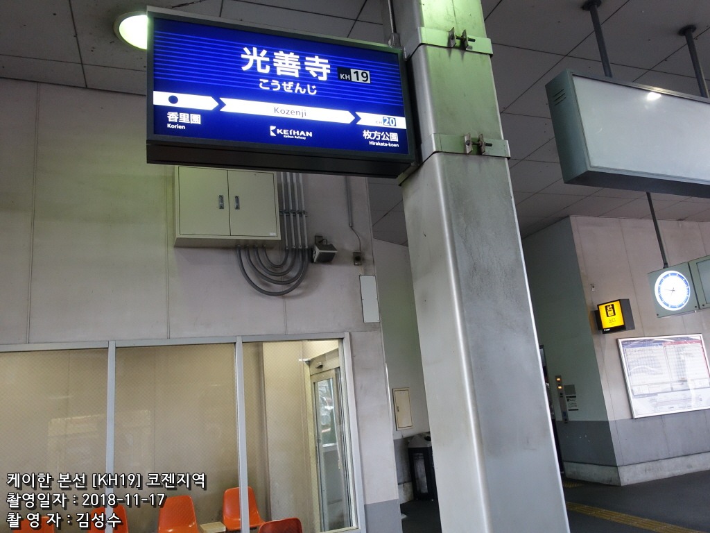 19.1km | KH19 | 코젠지 | 光善寺 | | | | | | | ↑ | | | ↓ | | | 6 | 103 | 1 | 66 | 오사카부 히라카타시 | 유인역 | 2면 2선 | 2||1 | 1910/12/15 | 21,213 |