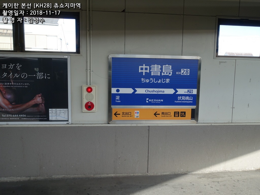 츄쇼지마역 환승안내 - 케이한 우지선(KH28)