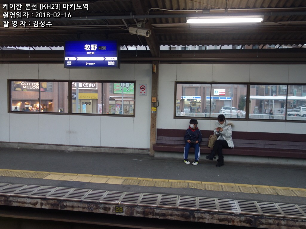 25.5km | KH23 | 마키노 | 牧野 | | | | | | | ↑ | | | ↓ | | | 6 | 86 | 1 | 39 | 유인역 | 2면 2선 | 2||1 | 1910/04/15 | 22,535 | |