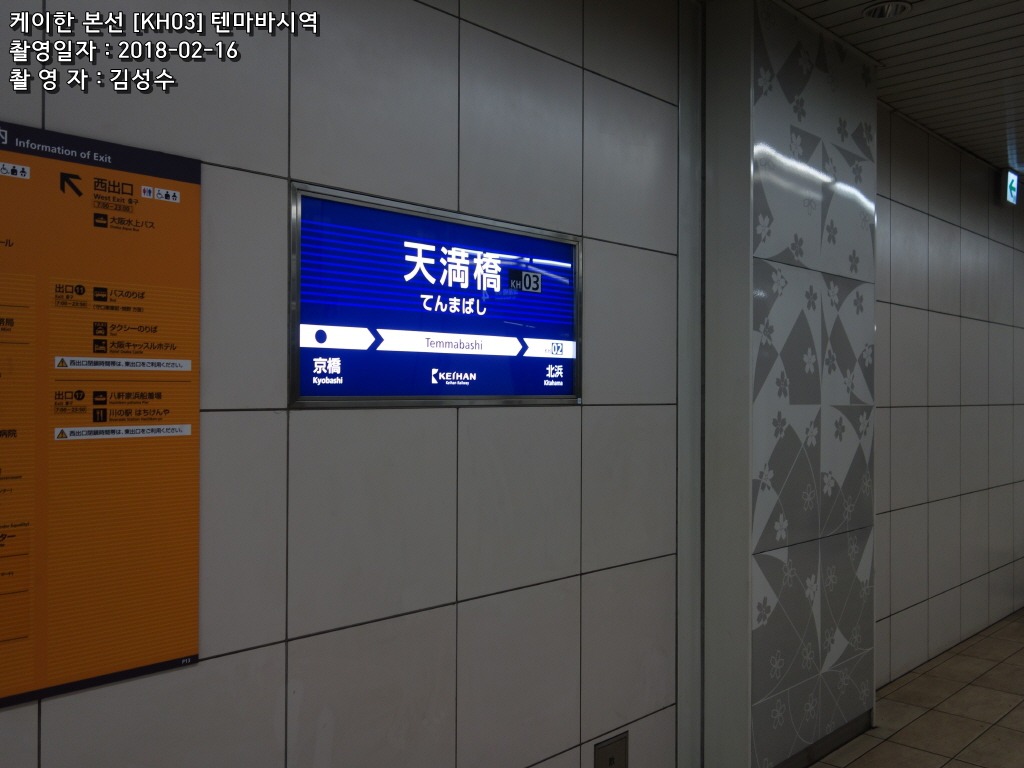 텐마바시역 환승안내 - 케이한 나카노시마선(KH03/직통운전) / 오사카메트로 다니마치선(T22)