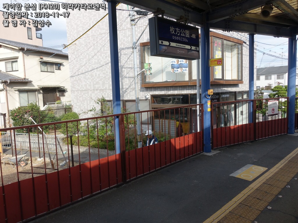 20.8km | KH20 | 히라카타코엔 | 枚方公園 | | | | | | | ↑ | | | ↓ | 17 | 6 | 103 | 1 | 66 | 유인역 | 2면 2선 | 2||1 | 1910/04/15 | 18,506 | |
