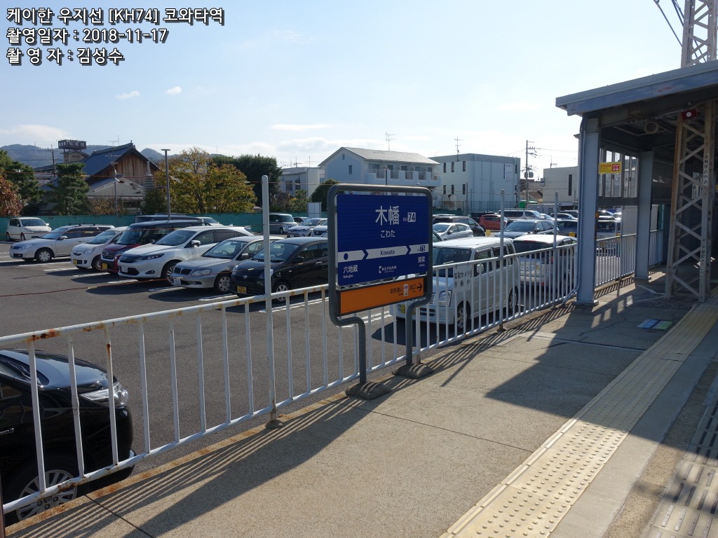 3.9km | KH74 | 코와다 | 木幡 | 117 | 교토부 우지시 | 유인역 | 2면 2선 | 1||2 | 1913/06/01 | 6,402 |