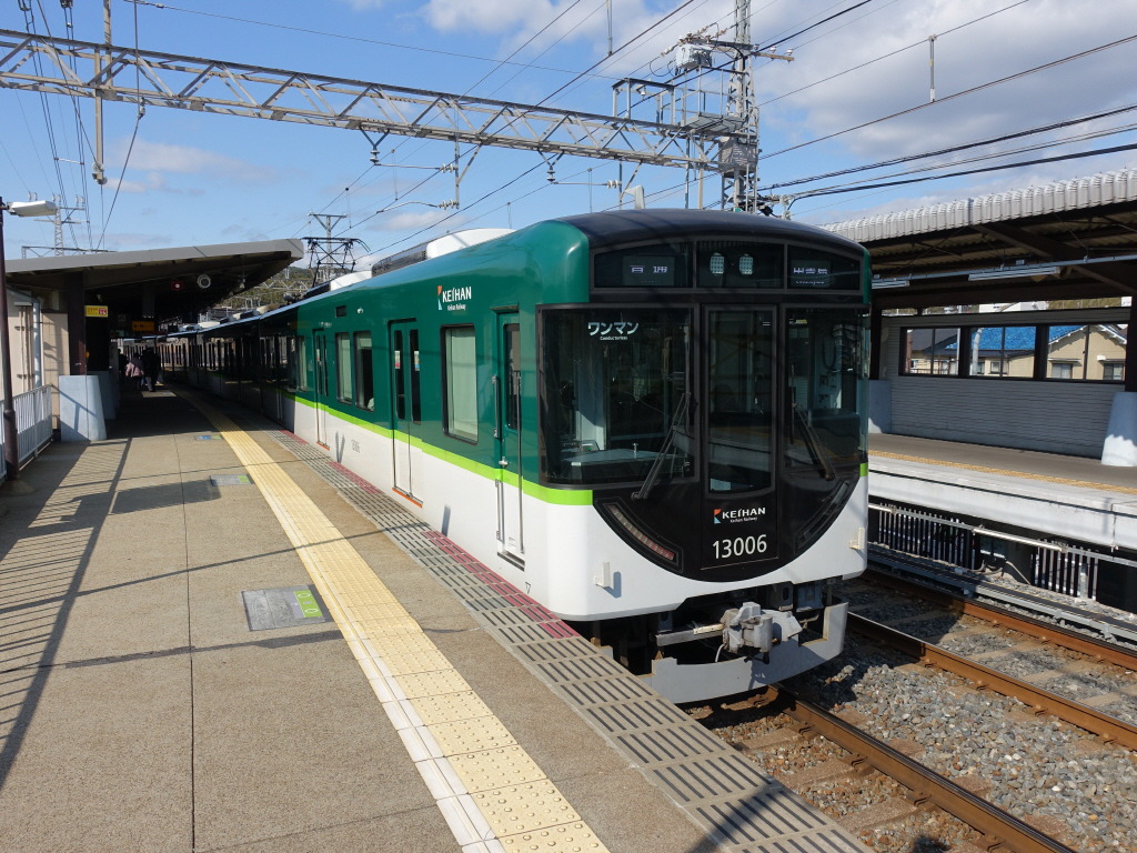 2013년 6월 1일부터 우지선에도 1인승무 운전이 개시되었다. 케이한의 1인승무 운전은 2002년의 케이신선을 시작으로 2003년에는 이시야마사카모토선, 2007년에는 카타노선이 개시되었으며 이번에 4번째가 된다. 우지선의 전 역에 자동개찰기가 도입되었기 때문에 열차의 출입문은 무인역일 때도 모든 출입문이 열리고 닫힌다.