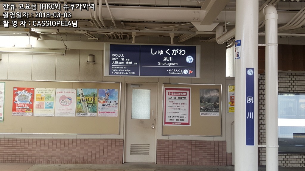 슈쿠가와역 환승안내 - 한큐 고베본선(HK09)
