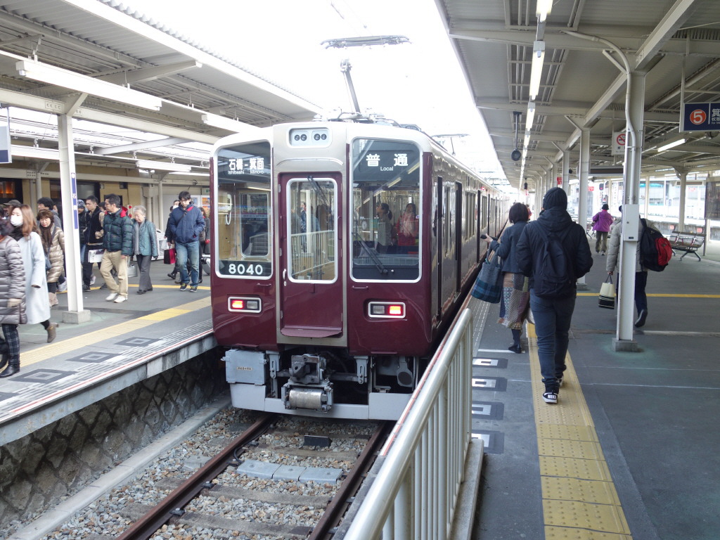 평일/토휴일을 가리지 않고, 출퇴근/이른아침/심야를 제외하고는 10분 간격으로 선내 왕복운전을 하고 있다. 평일 아침 출근시간대에는 우메다역 직통의 보통열차가 운전된다. 우메다 직통열차는 2018년 7월 7일 시각표 개정으로 인해 준급은 모두 폐지되고, 우메다행의 보통열차 2편만 남게 되었다. 차량은 5100계, 6000계, 8000계가 사용되며, 4량편성으로 선내 반복운전을 하고 있다.