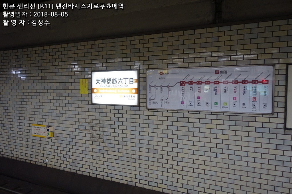 텐진바시스지로쿠쵸메역 환승안내 - 오사카메트로 사카이스지선(K11) / 오사카메트로 다니마치선(T18)