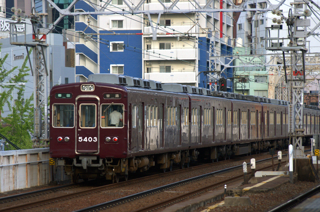 보통열차의 운전 계통은 기타센리~우메다 / 기타센리~텐가차야 / 다카츠키시~텐가차야 이렇게 3개의 게통으로 크게 나눌 수 있는데, 낮시간대에는 이 3개의 계통이 1:2:1의 비율로 교대로 운행된다. 이 모든 열차들은 아와지역에서 연계운행을 하게 되며, 일반적인 운행계통 외에도 텐가차야~쇼쟈쿠/이바라키시 구간의 열차도 설정되어 있으며, 아침에는 아이카와발 텐가차야행 열차도 설정되어 있다.