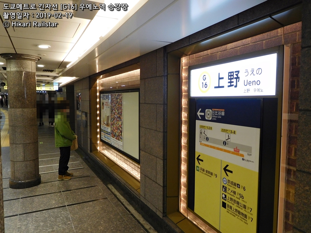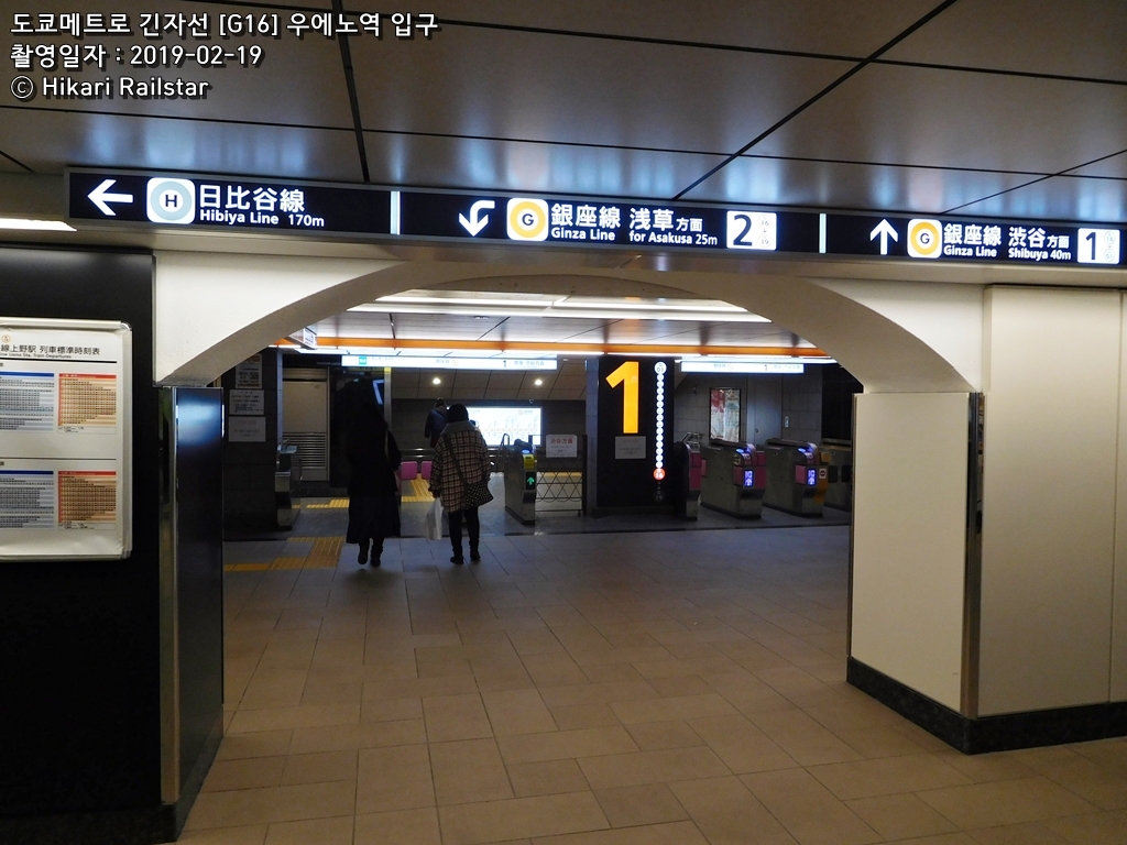 도쿄메트로 우에노역 환승안내(도보 5분)