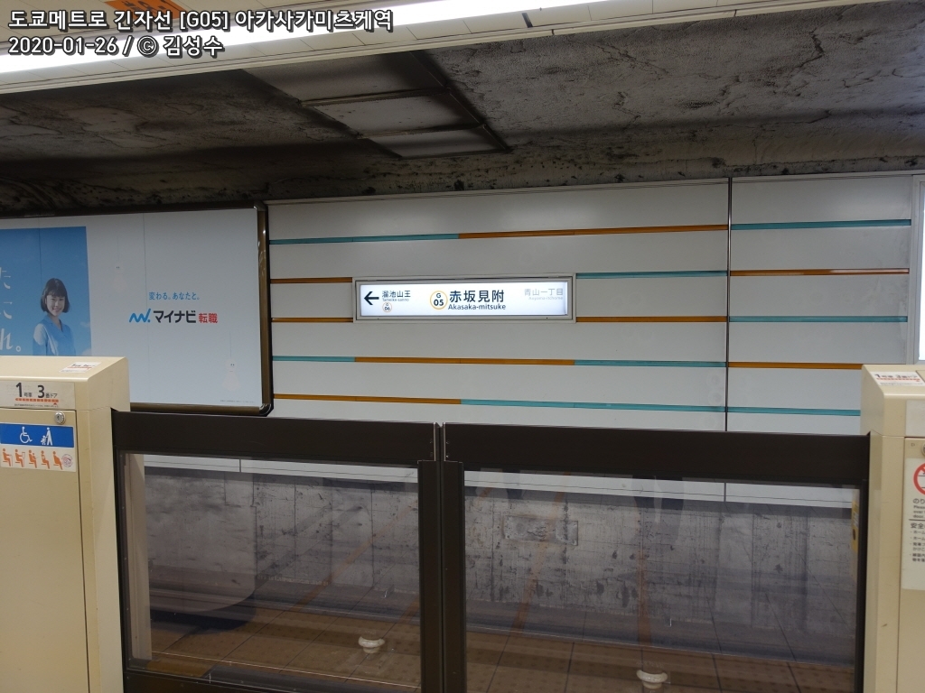 아카사카미츠케역 환승안내(환승시간 0~5분(일부 동일홈 환승))