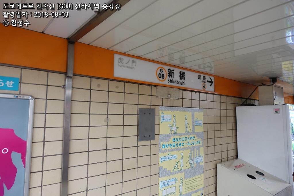 토라노몬힐즈역 승강장(환승시간 15~20분)