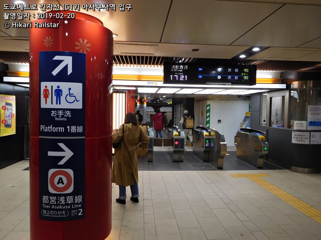 도에이지하철 아사쿠사역 환승안내(환승시간 10~15분)