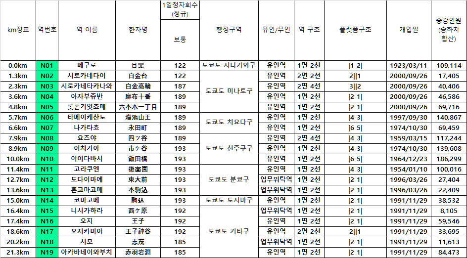 [간토지역]★ [19/19] 도쿄메트로 - 도쿄메트로 난보쿠선(南北線/메구로~아카바네이와부치, 21.3km)