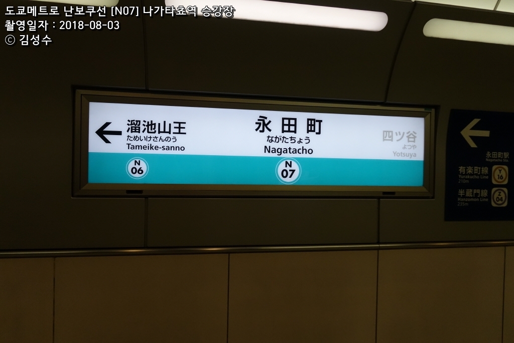 도쿄메트로 나가타쵸역 환승안내(환승시간 5~10분)